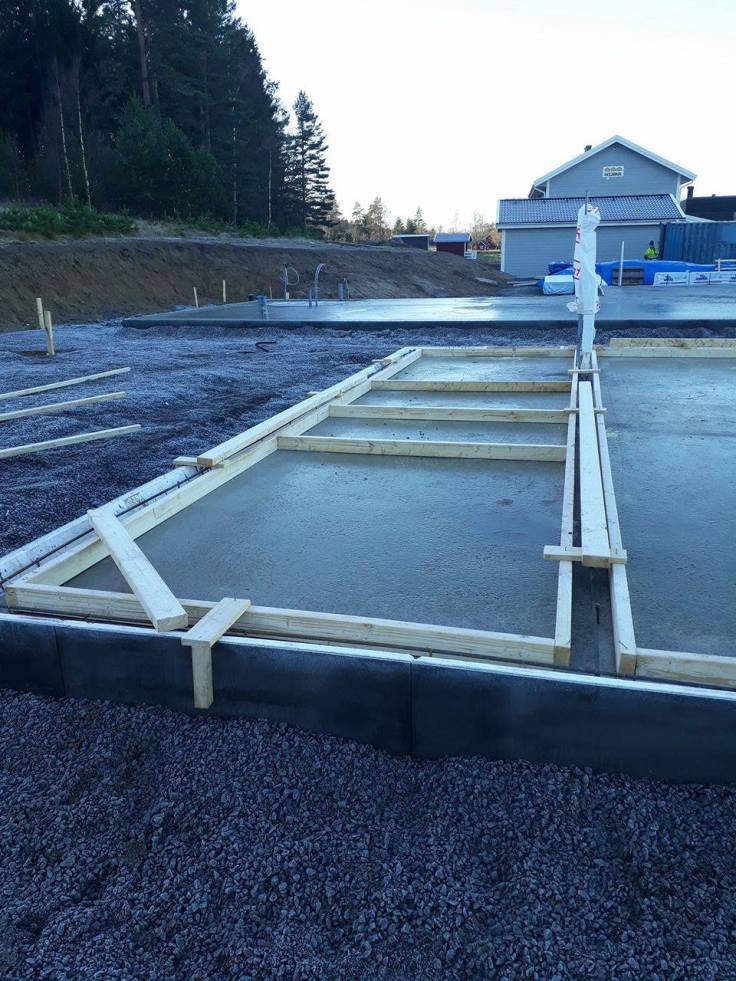 Igår gjorde vi formen till gjutningen av klacken i garaget och idag gjöt vi den. Trots lite strul med att vi hade beställt för få betongsäckar och fick åka och handla några fler så blev det väldigt bra. Det blir ju lite provisoriskt när vi inte har satt igång vattnet där ute än, så vi fick ta med oss en massa dunkar med vattnen och använda när vi blandade. Jag har aldrig varit med och gjutit innan och det var faktiskt riktigt kul, så det kommer nog att bli en hel del gjutet sen när vi håller på att fixar iordning trädgården.