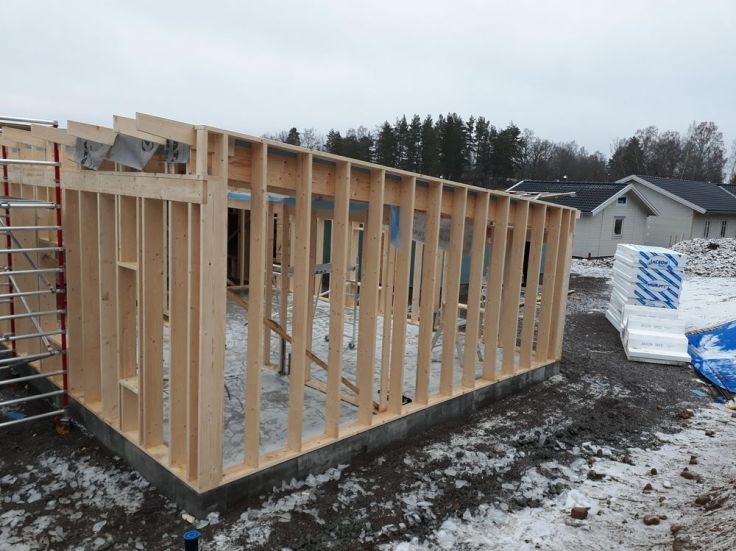 Just nu känns det som det flyter på väldigt bra med bygget men det är fortfarande mycket kvar. Det är väldigt bra att jag kan vara ledig en del fredagar så att jag också kan vara ute och bygga. Då slipper Joakim göra så mycket själv och att det även går fortare. Imorgon kommer mina föräldrar och hjälper till att lägga tak och gipsa.