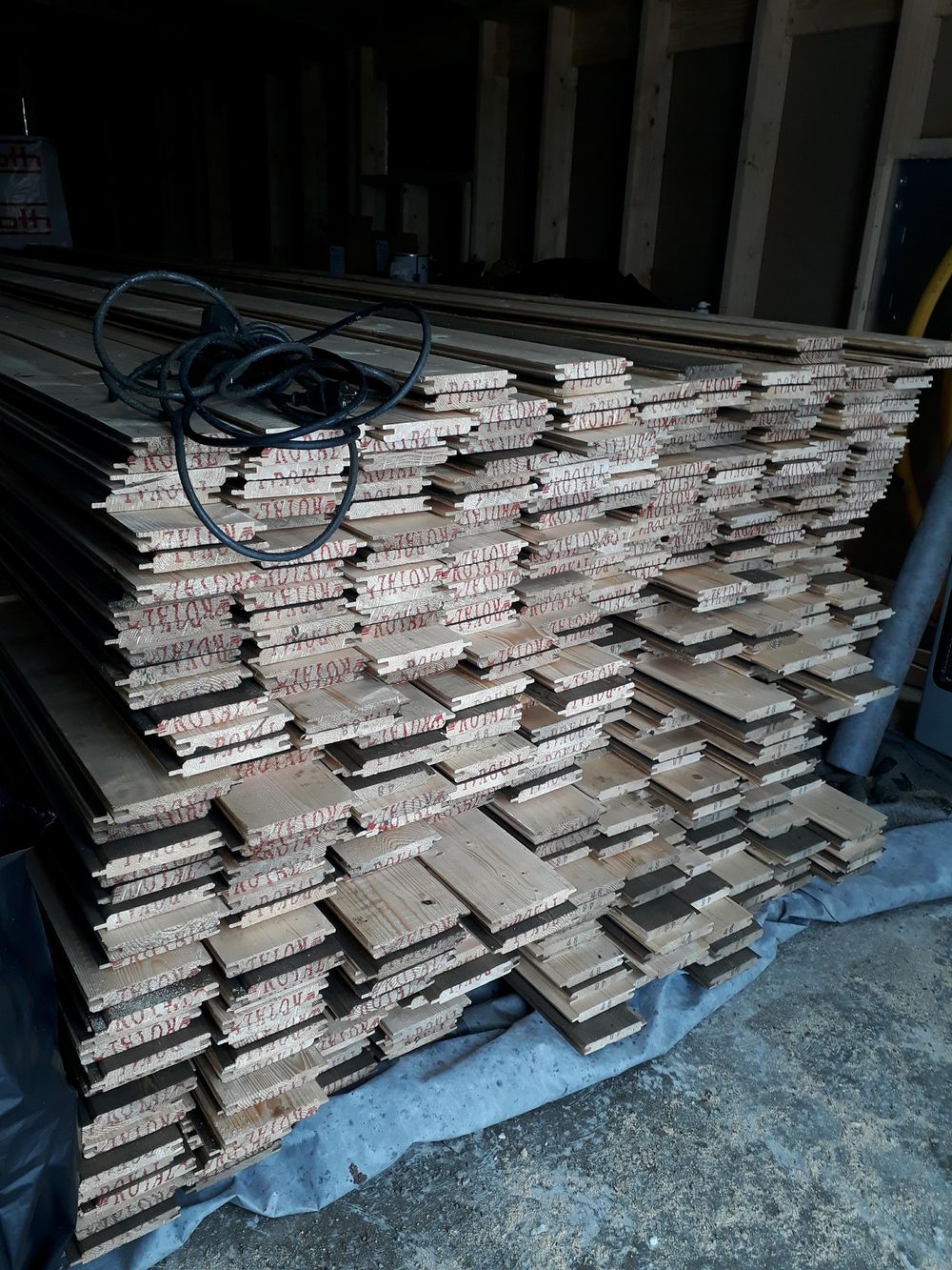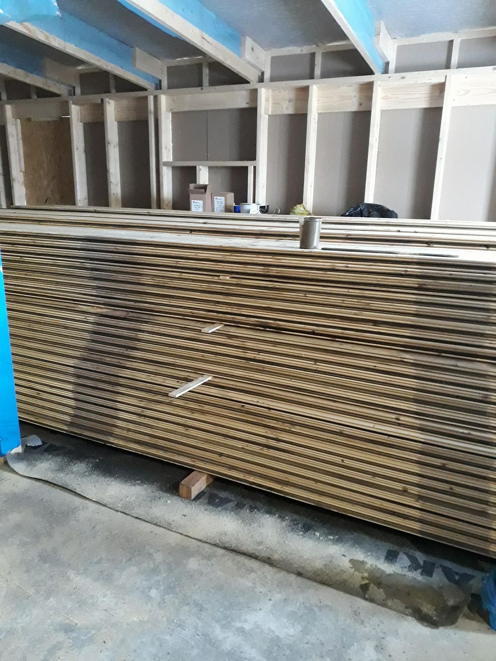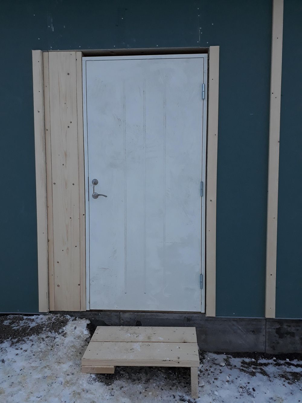 Nu är all panel färdig målad! Det tog 4 timmar men nu är det äntligen gjort. Det är inte direkt det roligaste att stå och måla panel men som tur är så kör vi med färgspruta istället för pensel. Om vi målat med pensel hade vi inte ens varit halvvägs än. Vi har även satt dit vår provisoriska ytterdörr så nu börjar huset bli mer och mer tätt. Tanken är att vi ska sätta igen de andra dörrhålen imorgon och även sätta plast för det hålet där det stora glaspartiet ska vara. Så förhoppningsvis torkar reglarna till snart. Vi har även satt upp lampor i olika delar av huset så att vi kan se vad vi gör där inne. Nu när all gips och taket är uppe så är det väldigt mörkt där inne och vi behöver åka och köpa fler bygglampor att ha inne i huset. Imorgon fortsätter vi med att sätta gles. Joakim har redan gjort en av ytterväggarna och imorgon hinner vi förhoppningsvis med resten. Det blir inte en lika lång byggdag imorgon eftersom Joakims föräldrar kommer upp på eftermiddagen och vi ska ut och äta.Det ska bli skönt med lite avbrott i byggandet och trevligt att träffa dem igen då vi inte har träffats sen jul.