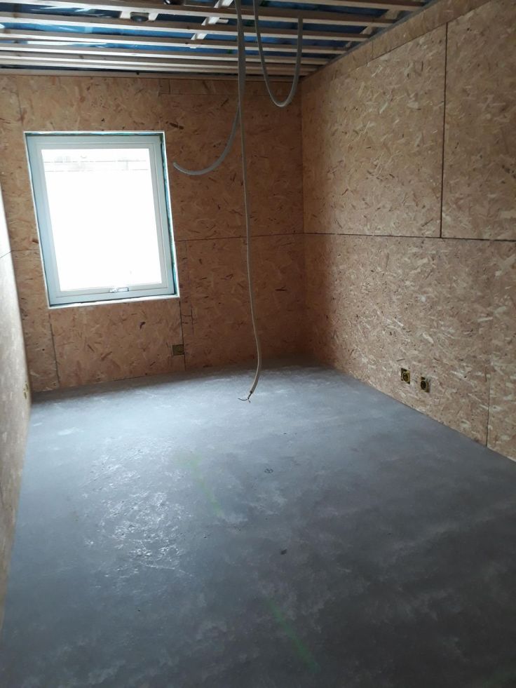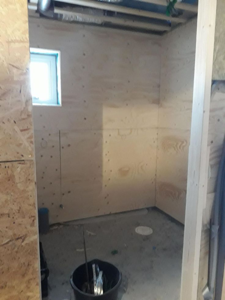 Ett av sovrummen klar med osb och väntar nu på gipsning av tak och väggar