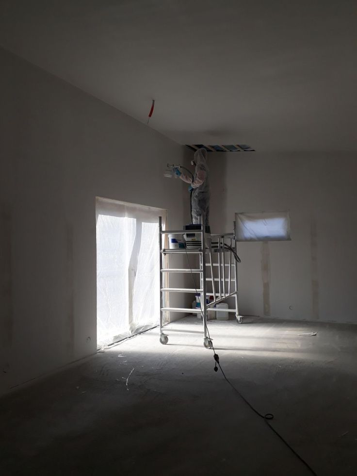 Ännu en helg med bygge avklarat. Denna helgen har det varit fokus på spackling, slipning och målning. Köket, tvättstugan, båda vardagsrummen och ett av förråden är färdigmålade. Igår spacklade vi klart alla sovrum, det stora förrådet och hallen, och idag har vi slipat klart dem. Så imorgon kan Joakim börja direkt med att måla. Vi fick köket i fredags, dock bara halva så nu ska resten komma under veckan. Det gjorde inget att allt inte kom i fredags, eftersom vi inte hade hunnit sätta upp det i helgen ändå. Idag har vi även varit på Bauhaus och tittat på kakel och klinket ännu en gång, och nu har vi ändrat oss igen. Men nu tror vi att vi faktiskt har hittat rätt när det gäller hallen och klädvården.