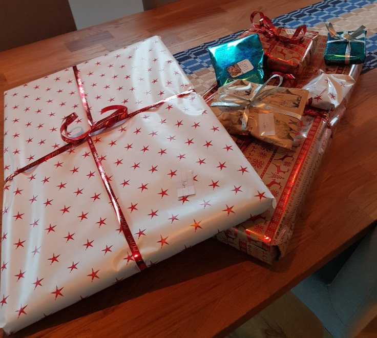 Om vi nu ändå pratar om nedräkning så är det bara 15 dagar till jul och 13 dagar tills vårt första julfirande detta året. Det har varit en del stress kring detta från min sida då det är vi som ska ha julen hos oss i år. Men nu har det börjat att lugna sig och jag har bara en julklapp till att fixa. Så under eftermiddagen har det blivit inslagning av de senast inköpta julklapparna. Det börjar fylla på i kassarna i garderoben.