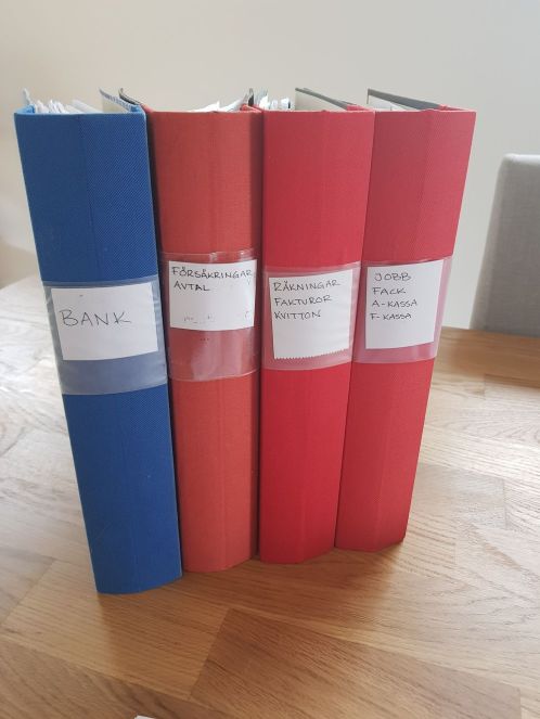 Och idag har jag äntligen gjort det som jag har tänkt göra så länge men inte gjort för att jag inte har haft energin till det. Jag har gått igenom och sorterat våra pärmar, slängt en massa gamla papper som vi inte längre har nytta av och satt ihop så att vi nu har gemensamma pärmar istället för varsin. Så skönt att äntligen få det gjort, och det har nu lugnat organisatören i mig. Iallafall för stunden😂