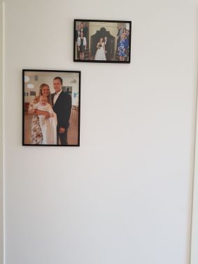 Visst blev det bra? Nu är det ingen risk att hon klämmer fingrarna i framtiden. Dock får man passa sig lite när man öppnar den då locket får en väldig fart. Vi fick även tummen ur och satte upp några tavlor så nu har vi börjat på en liten familjevägg.