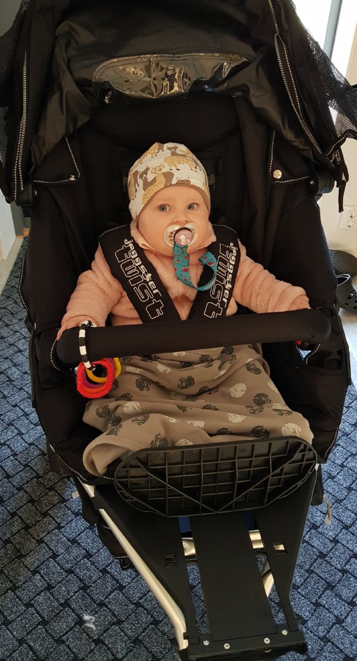 Vilken bra födelsedag jag hade igår! Joakim hade köpt med sig fika hem, så det blev riktig födelsedagsfika med punchrulle och Napoleonbakelse. Jag fick ett till batteri till min kamera och en usb-adapter till min apple-dator så jag kan använda usb på den också. Efter det åkte vi in till stan och fick ut och åt på 1854, italiensk restaurang. Pizza blev det och så gott det var! Melissa skötte sig galant och fick sitta i knät emellanåt. På restaurangen bestämde vi oss för att sätta ett mål på att springa 2 gånger i veckan. Så idag så blev det premiärtur med springvagnen