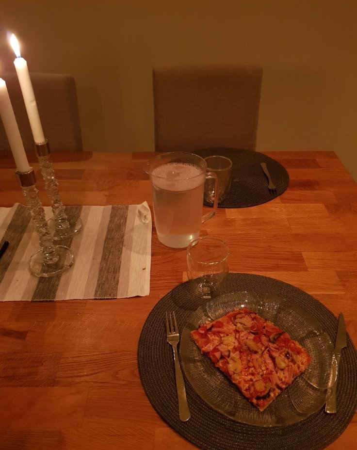 Efteråt åkte vi alla till City Gross nya butik på Tornbyområdet och tog en fika innan det var dags att åka hem igen. Då började dagens äventyr lämna sina spår. Melissa var jättetrött och min förkylning blev värre med mer halsont och huvudvärk. Jag fick avboka mitt spinningpass på morgonen på grund av halsen och det var tur det för annars hade det nog varit ännu värre. Så det har varit en lugn eftermiddag och kväll här i Nykil. Lite promenad och tv-spel. Det blev även en hemgjord pizza med grahamnsbotten och vi fick äta i lugn och ro då Melissa var alldeles utslagen efter dagens lek.