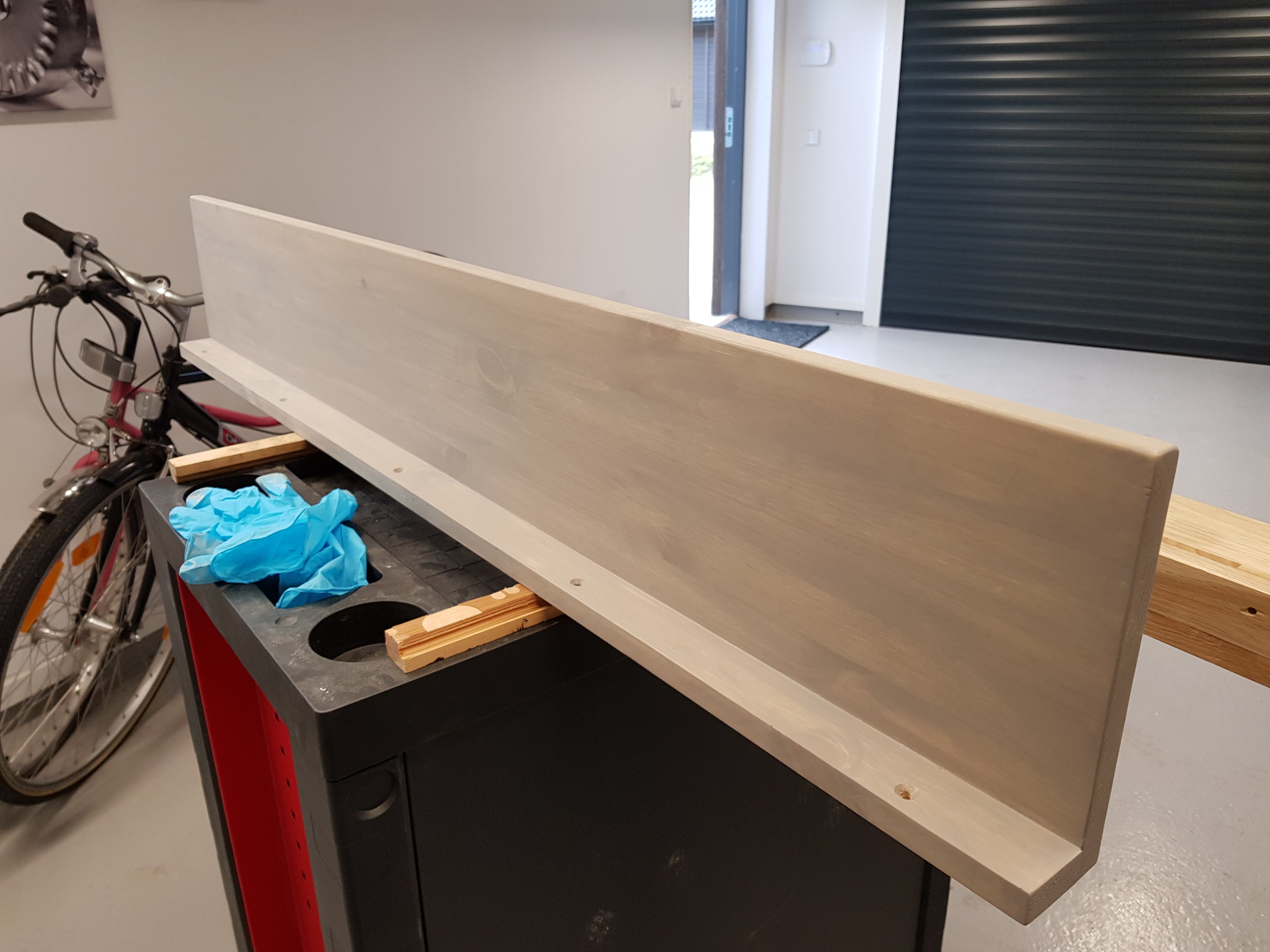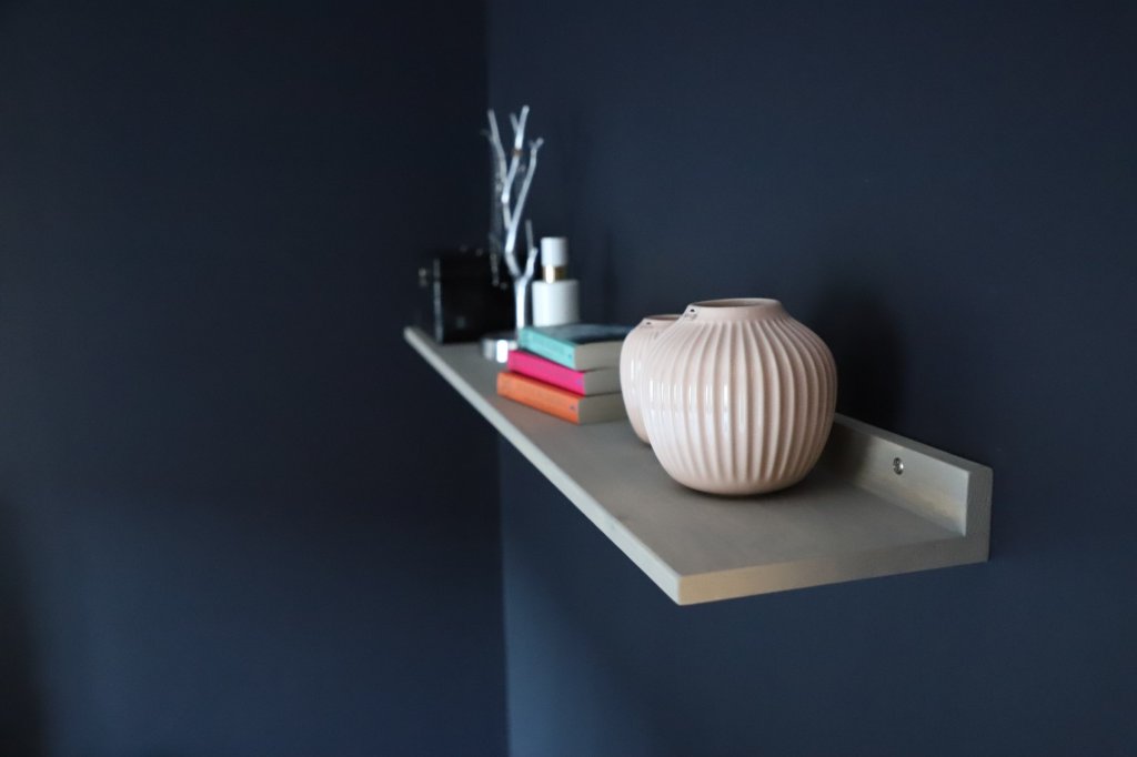 I allrummet är hyllan i ek som är oljad, och i sovrummet är hyllan i furu som är behandlad med en ljusgrå bets. Vi valde furu i sovrummet för att ådringen skulle bli mer tydlig. Kolla resultatet 🤗
