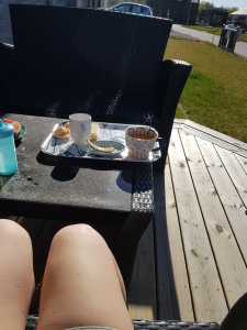 Idag var humöret bättre, tänk hur mycket sömnen påverkar egentligen! Även jag måste kommentera vädret är ju helt underbart att det fortfarande är soligt och varmt när man kommer hem från jobbet ☀️ Det blev en fika på framsidan