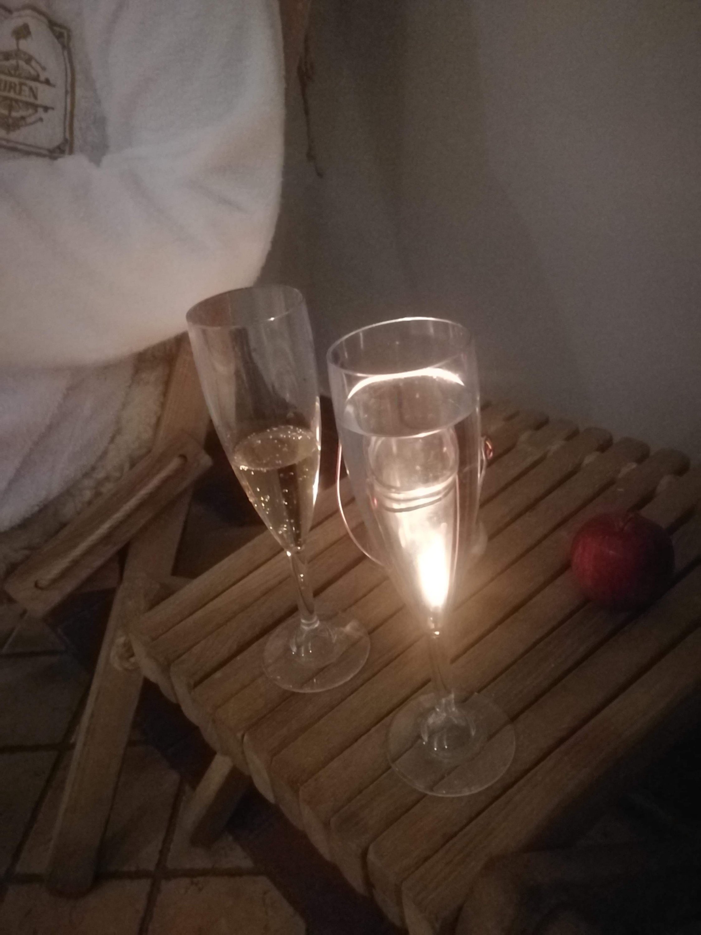 SĂ„ underbart att sitta ute i den varma poolen, njuta av solen och den friska luften! Man blir riktigt sugen pĂ„ en pool nĂ€r man sitter dĂ€r. Det blev över 4 timmars spa för vĂ„r del igĂ„r, sĂ„ vi kĂ€nde oss rĂ€tt möra nĂ€r vi gick till kvĂ€llens middag. Men vilken middag det blev! Vit morotssoppa med anka till förrĂ€tt, hjort med enbĂ€rssĂ„s, potatispurĂ© och rostade grönsaker till huvudrĂ€tt, och till efterrĂ€tt chokladfondant, hemgjord glass, krossade nötter och jordgubbar! SjĂ€lvklart blev det en massa god dricka till ocksĂ„đŸ„‚ Eftersom jag Ă€r emot att hĂ„lla pĂ„ med mobilen nĂ€r man Ă€ter pĂ„ restaurang blev det inga bilder pĂ„ maten, sĂ„ ni fĂ„r nöja er med en bild pĂ„ mig inför middagen 😊