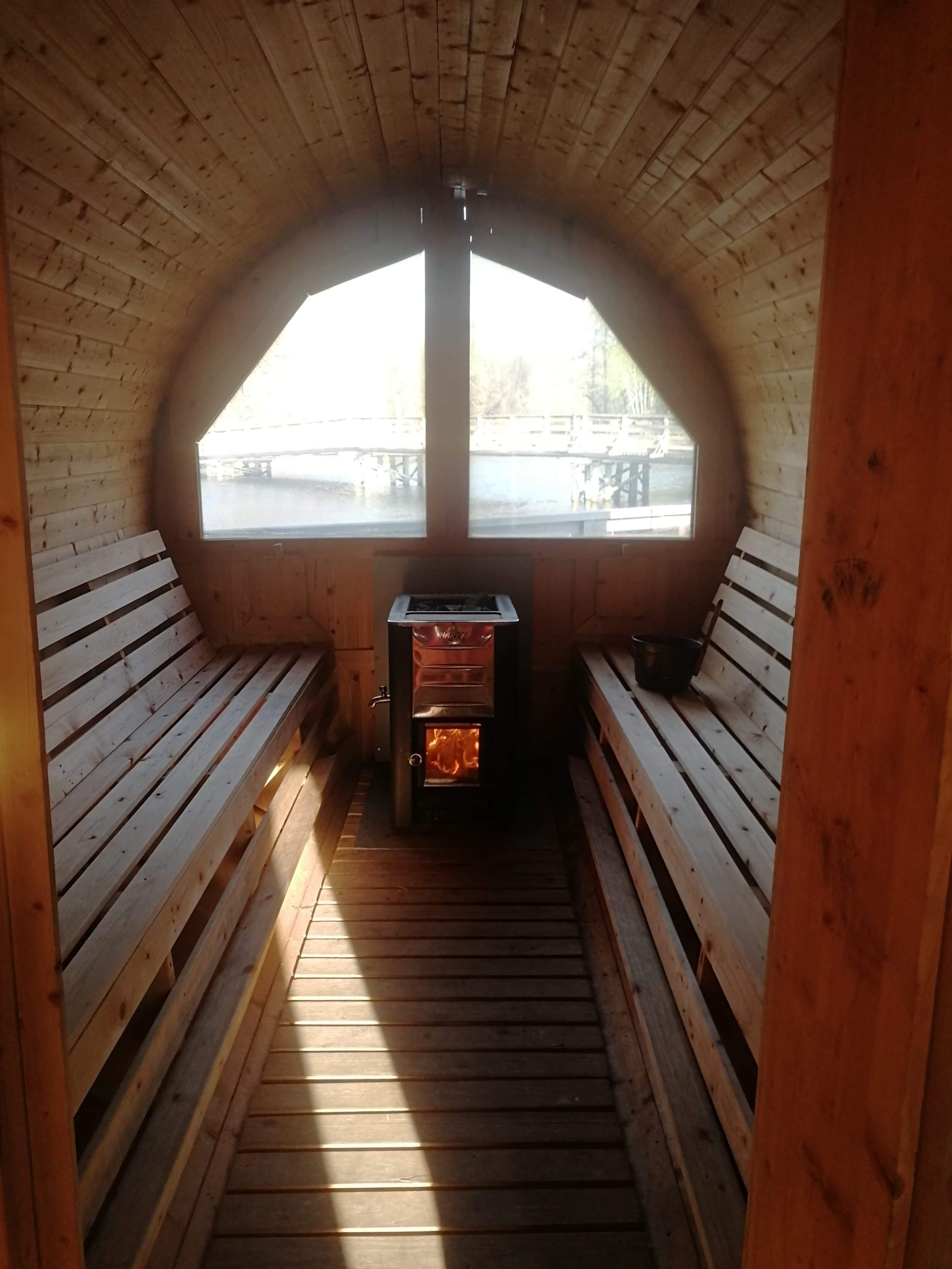 Efter ritualen var klar begav vi oss ut till bastun utomhus och de vedeldade badtunnorna!