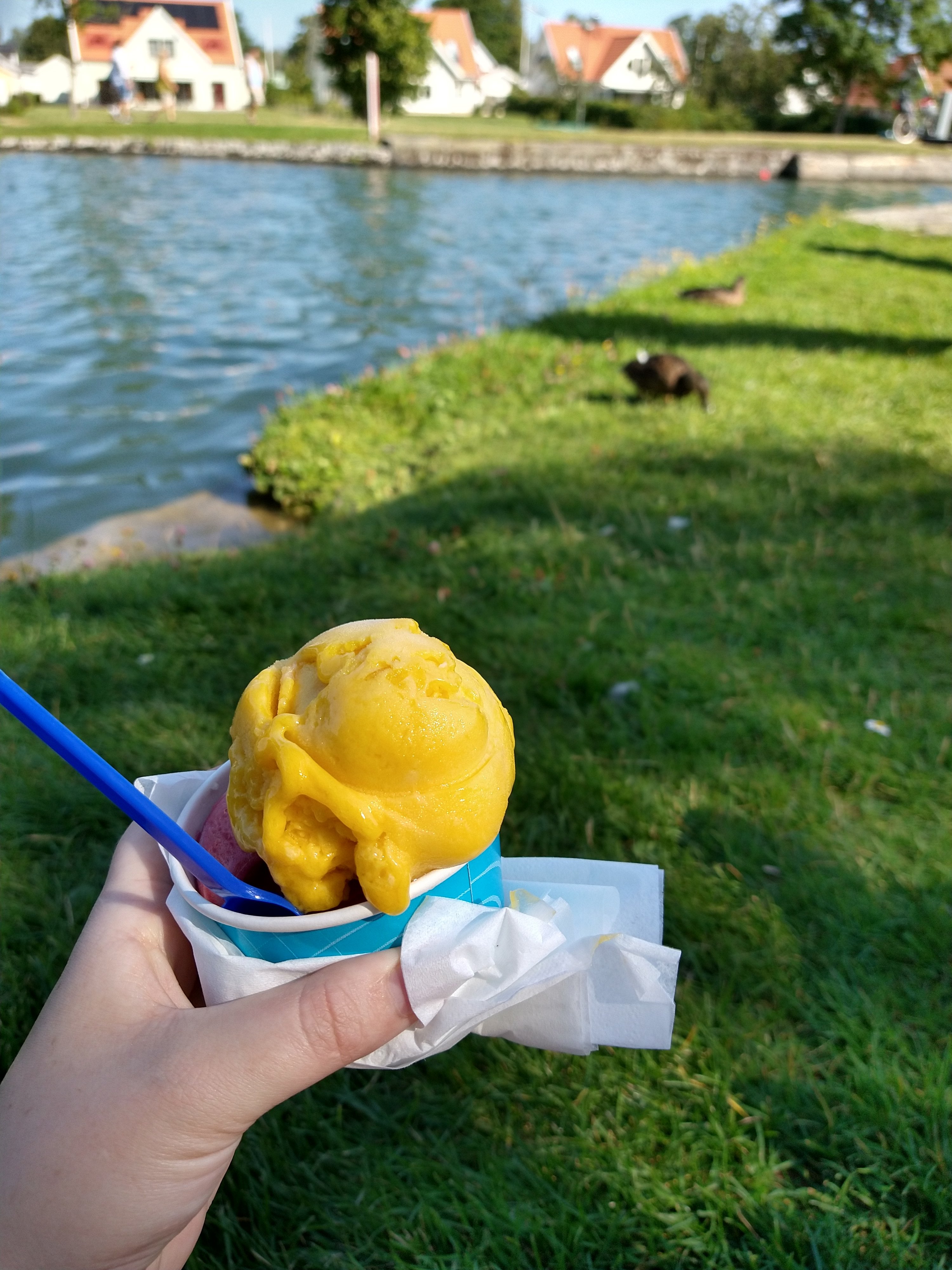 Igår gav vi oss ut på utflykt till Bergs slussar utanför Linköping. Fint väder och vi åkte dit tidigt innan det blev alldeles för varmt och stark sol för Melissa att vara ute. Självklart blev det även glass i skuggan och Melissa kunde kika på ankorna🦆