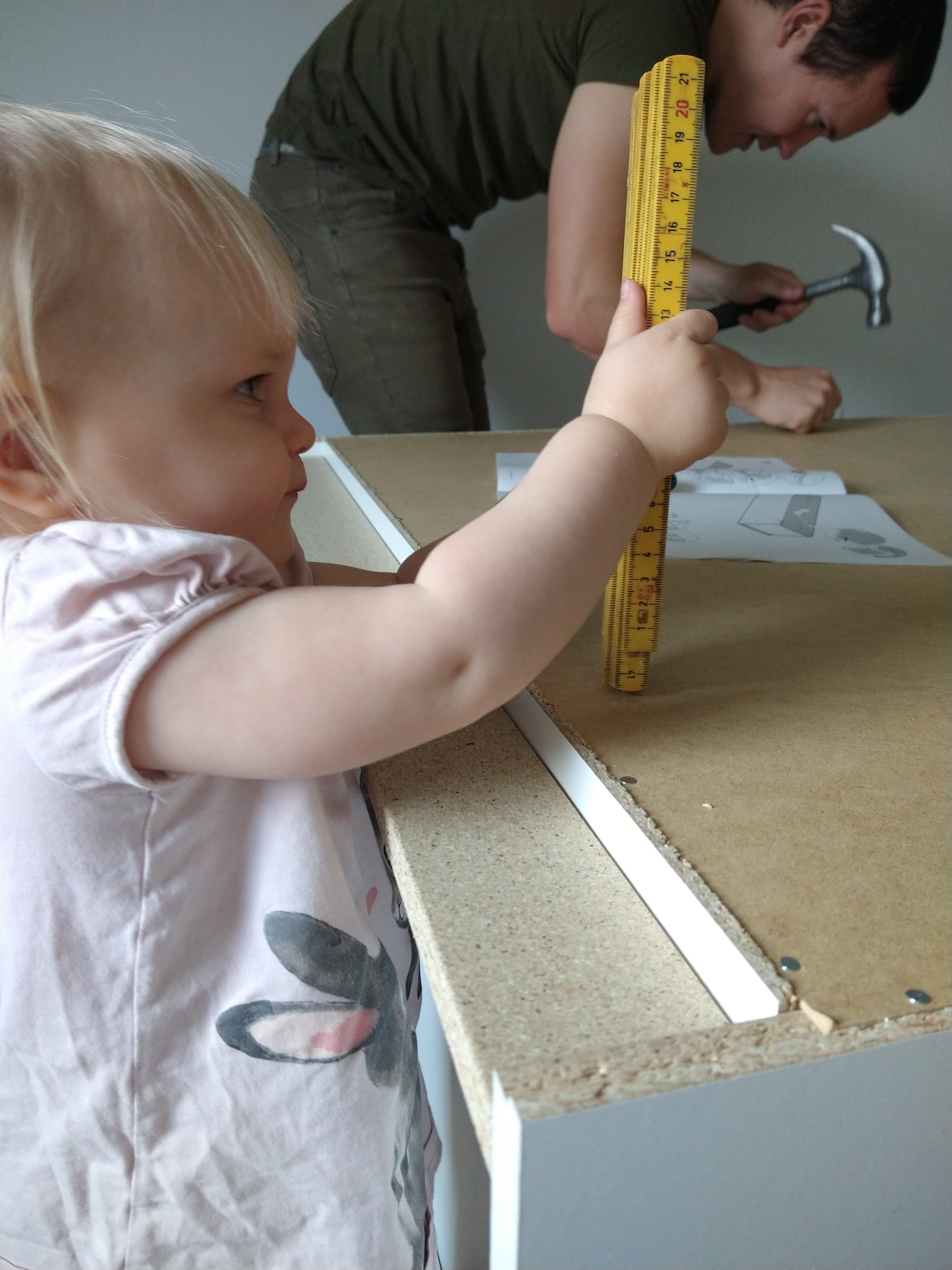Ser att ni har en bra hjälpreda i Melissa när ni bygger ihop garderober….alla måtten på plats.