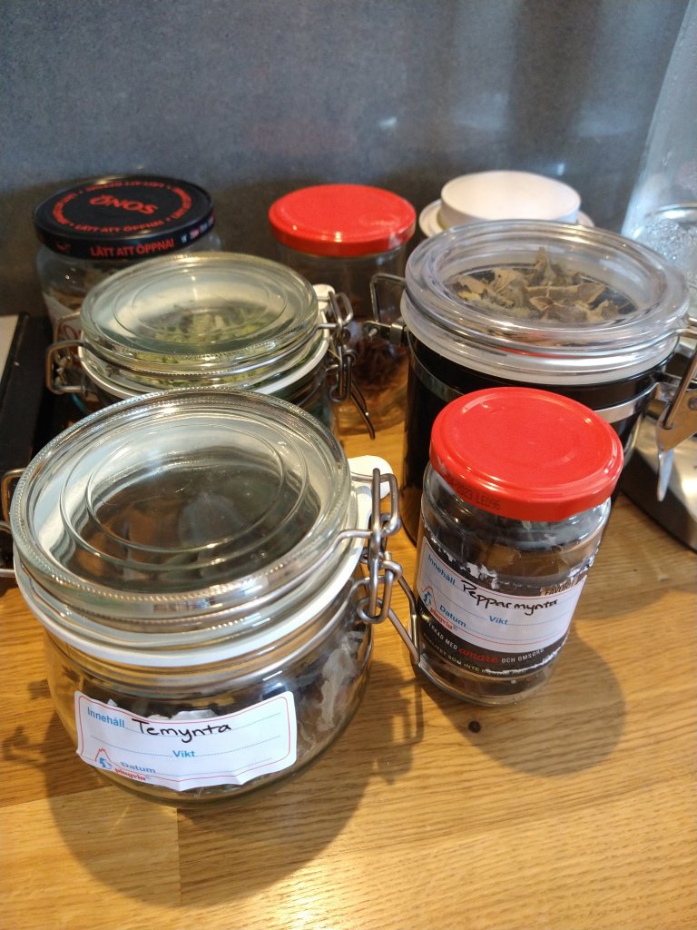 Några av alla mina burkar med teblad😅