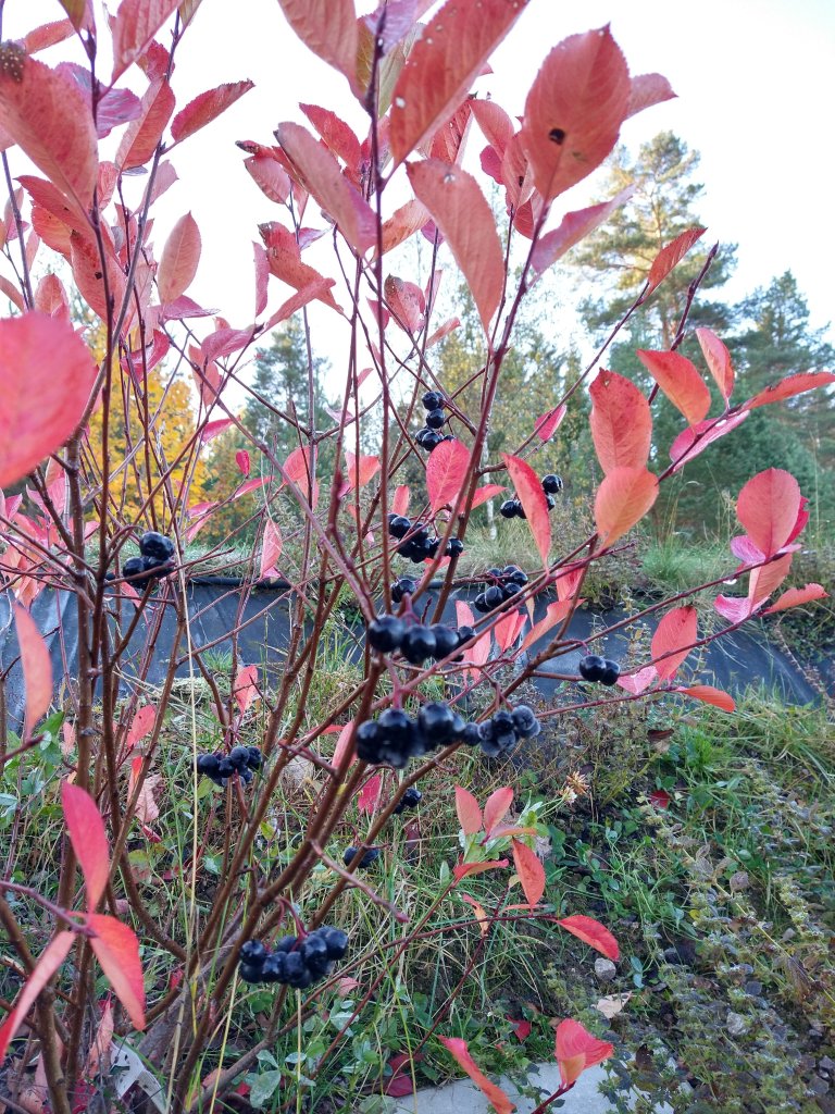 När vi gick upp idag så gnistrade frosten i gräset igen. Så efter frukost så gick vi ut i trädgården och fixade lite inför vintern. Joakim plockade in hydroforpumpen och tömde vattentankarna som vi samlar vatten i resten av året för att kunna vattna växterna ute. Under tiden plockade jag av bären på aroniabuskarna. Nu är bären på tork för att bli te 😊