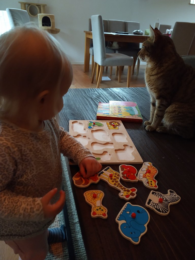 Hoppas Melissa snart mår bättre. Hon ser ut att ha det mysigt med att lägga pussel tillsammans med katten 😀