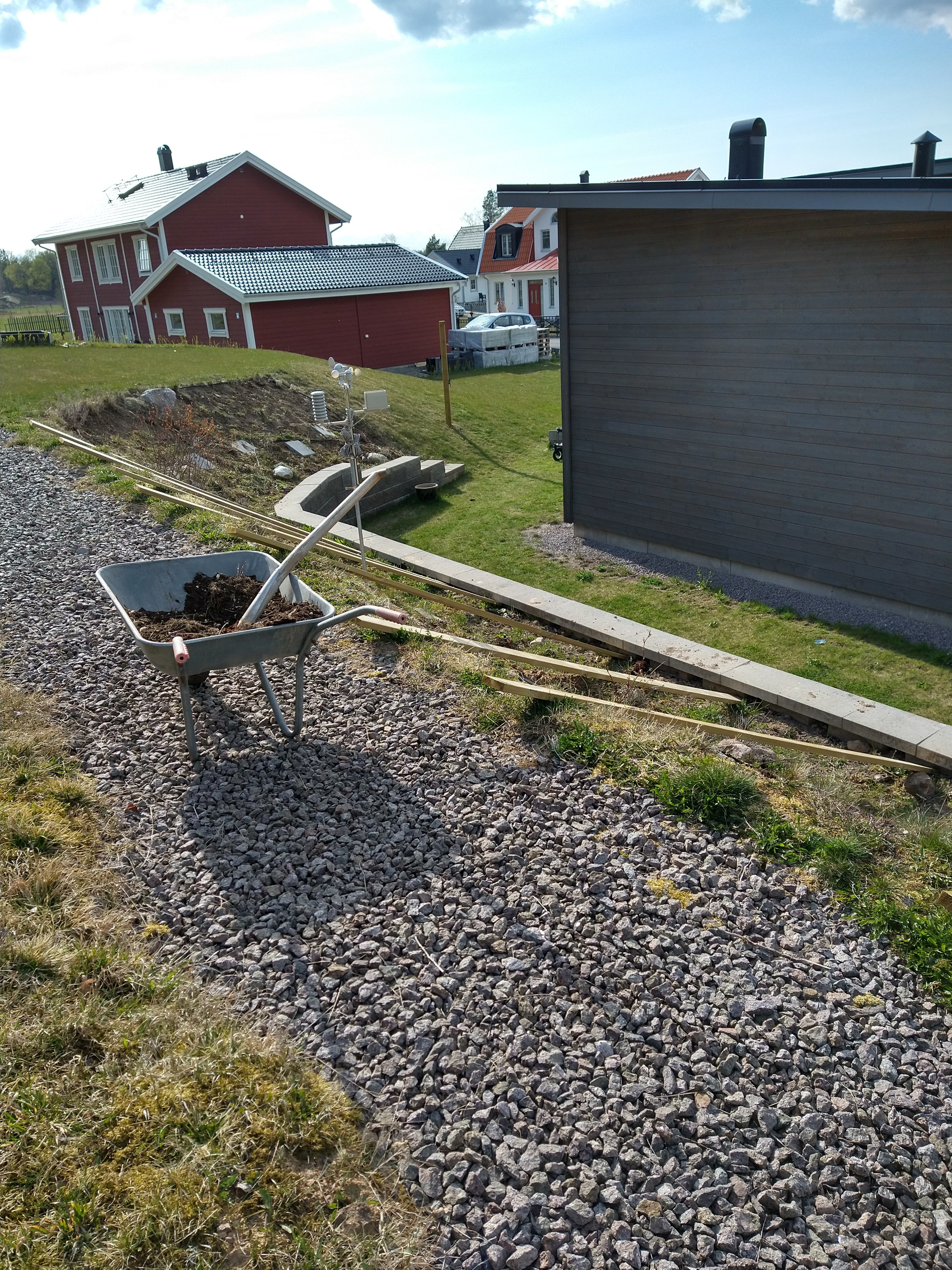 Väl hemma sen var det bara att fixa till det sista i slänten inför allt regn som komma de närmsta dagarna. Har nu planterat massor av ängsblommor i överkanten på slänten och igår kastade vi ut jord från våra komposter så det blir perfekt med regn nu.