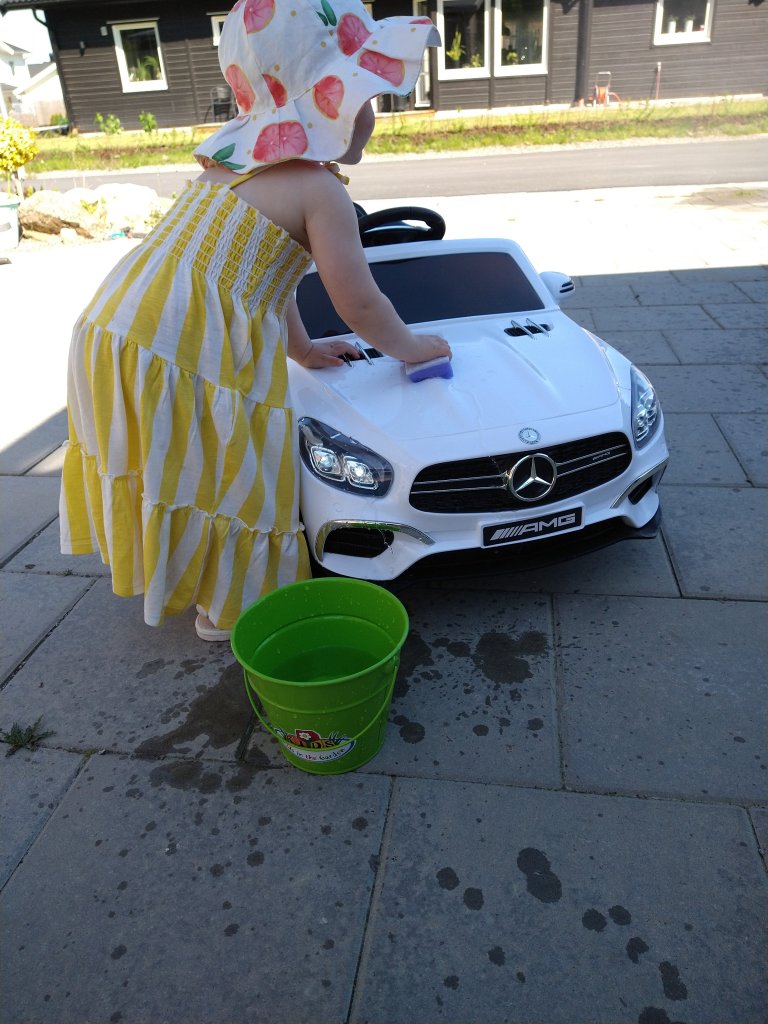Så söt lite bil och självklart behövde den bli ren också. Låter som ni haft en skön dag i värmen.