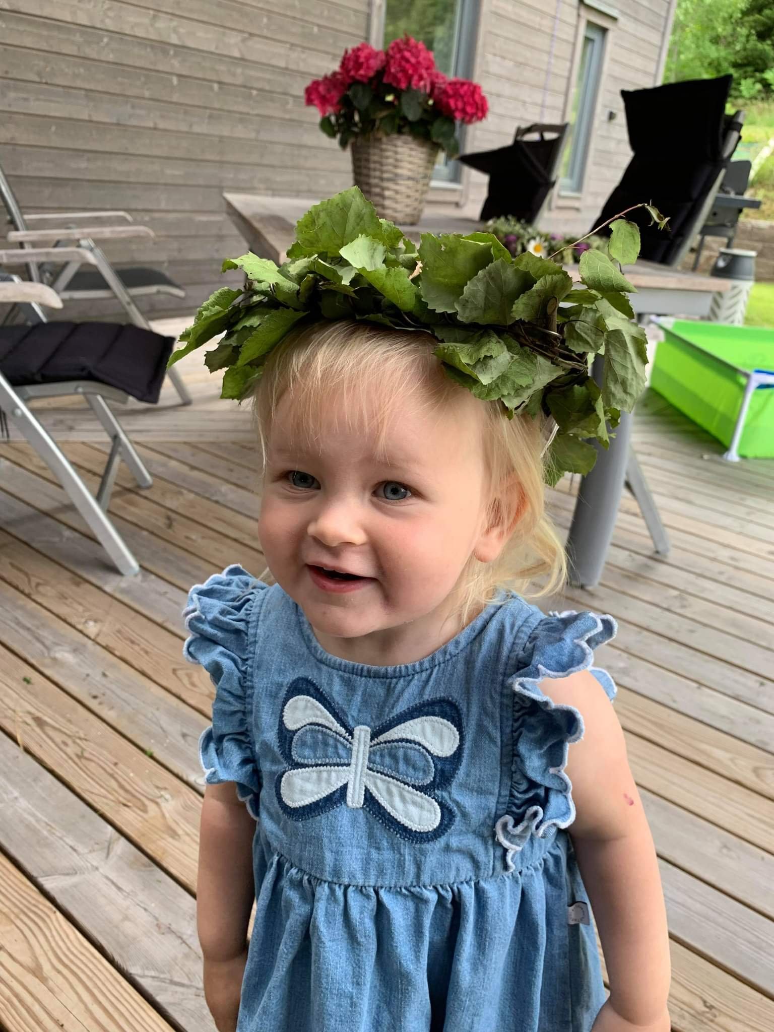 Vi hade en fantastisk midsommar med trevligt besök och god mat. Till lunch blev det varmrökt lax med en enkel potatissallad, och på kvällen grillades det. Det var mycket prat, kransbindning och kvällen avslutades naturligtvis med hemgjord och jordgubbar.