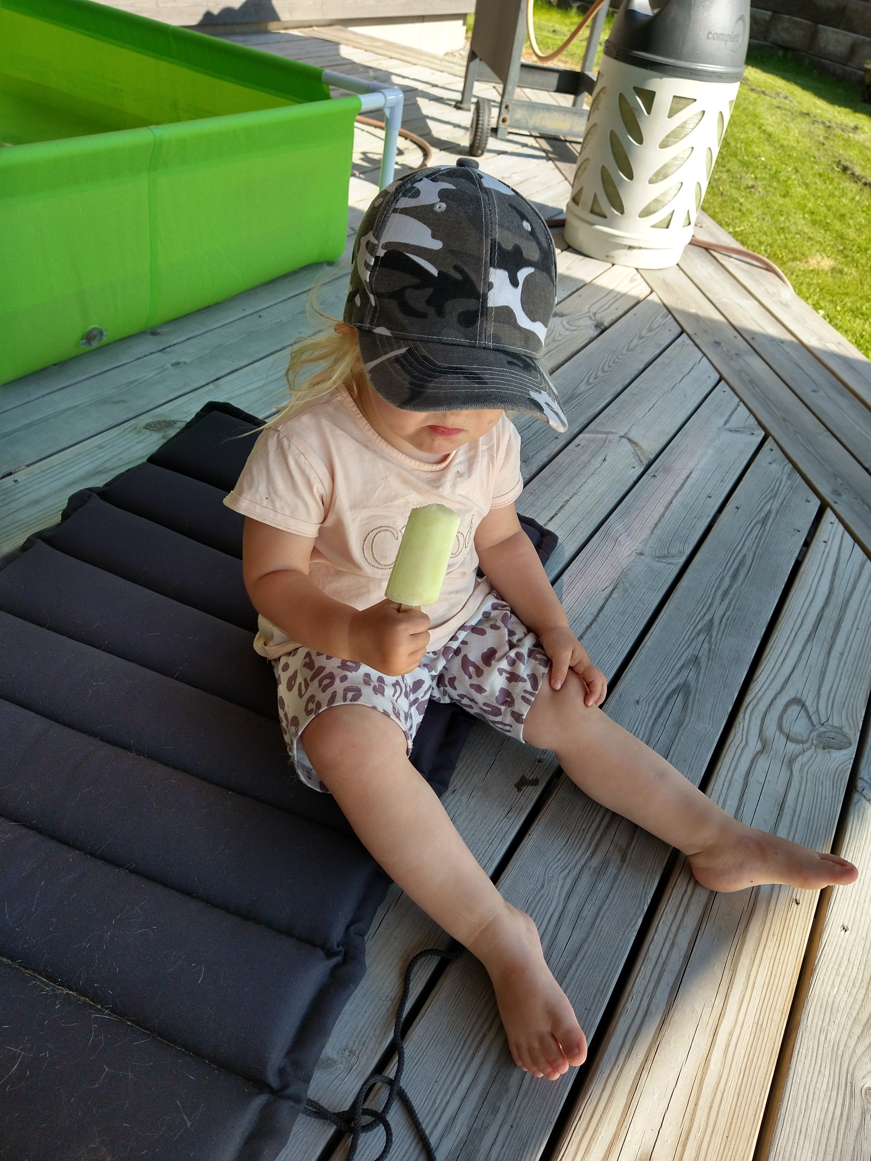 När vi hämtade Bartolo i fredags så fick vi även med oss ett gäng rabarber från mina föräldrar. Så idag blev det en ny omgång rabarbersaft. Självklart har det även blivit lite glass i värmen.