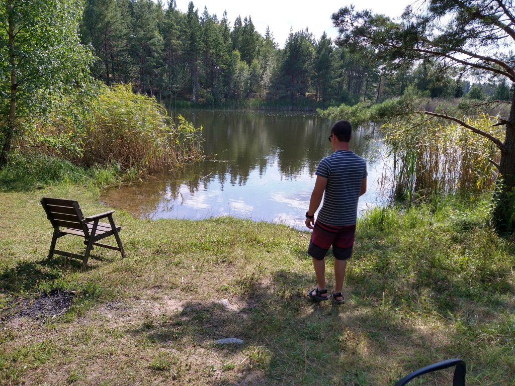 Efter allt slit i trädgården så kände vi för att bada. Som tur var så har vi grannar som har bra koll på bra badsjöar för hund. I Linköpings kommun är det tillåtet med hund på alla kommunala badplatser så länge hunden är kopplad, men vi ville ändå åka till något mer avskilt. Och avskilt fick vi, vi var ensamma på den lilla stranden.