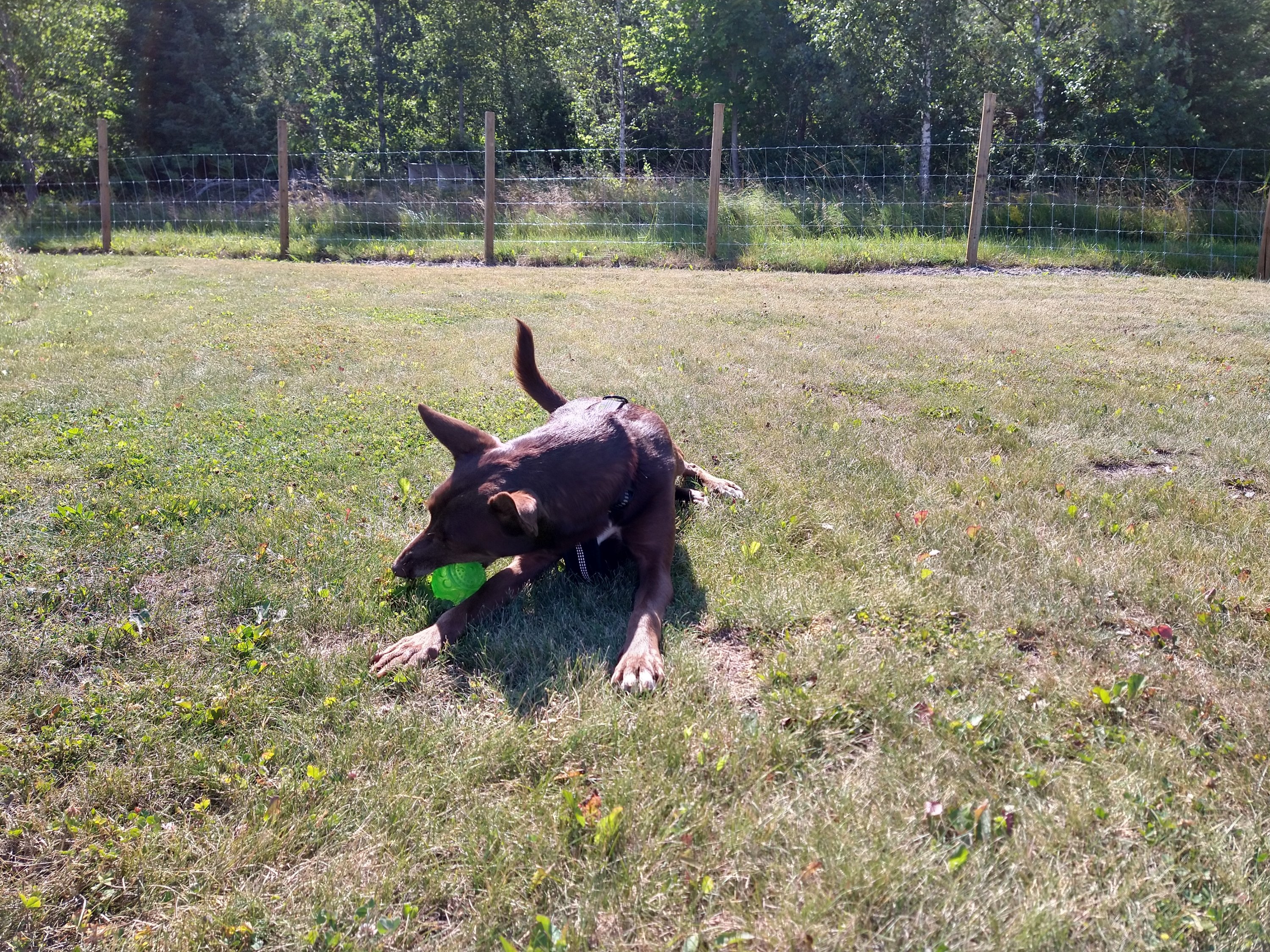 Idag blev staketet klart (förutom grindarna som kommer vid ett senare tillfälle). Så idag har Bartolo fått springa lös i trädgården. Och jisses, vilken fart det blev på honom. Och så lycklig han var när han kunde följa efter en överallt i trädgården.