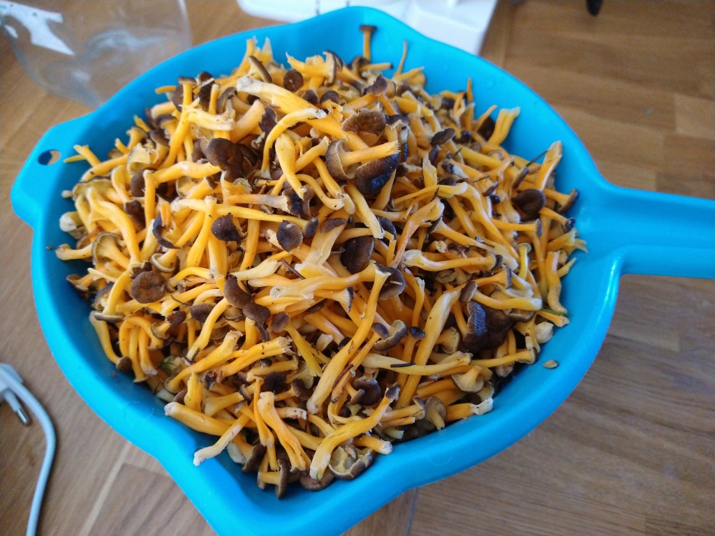 Det blev självklart mycket trattkantareller på kvällens hemgjorda pizza. Resten har hamnat i svamptorken.