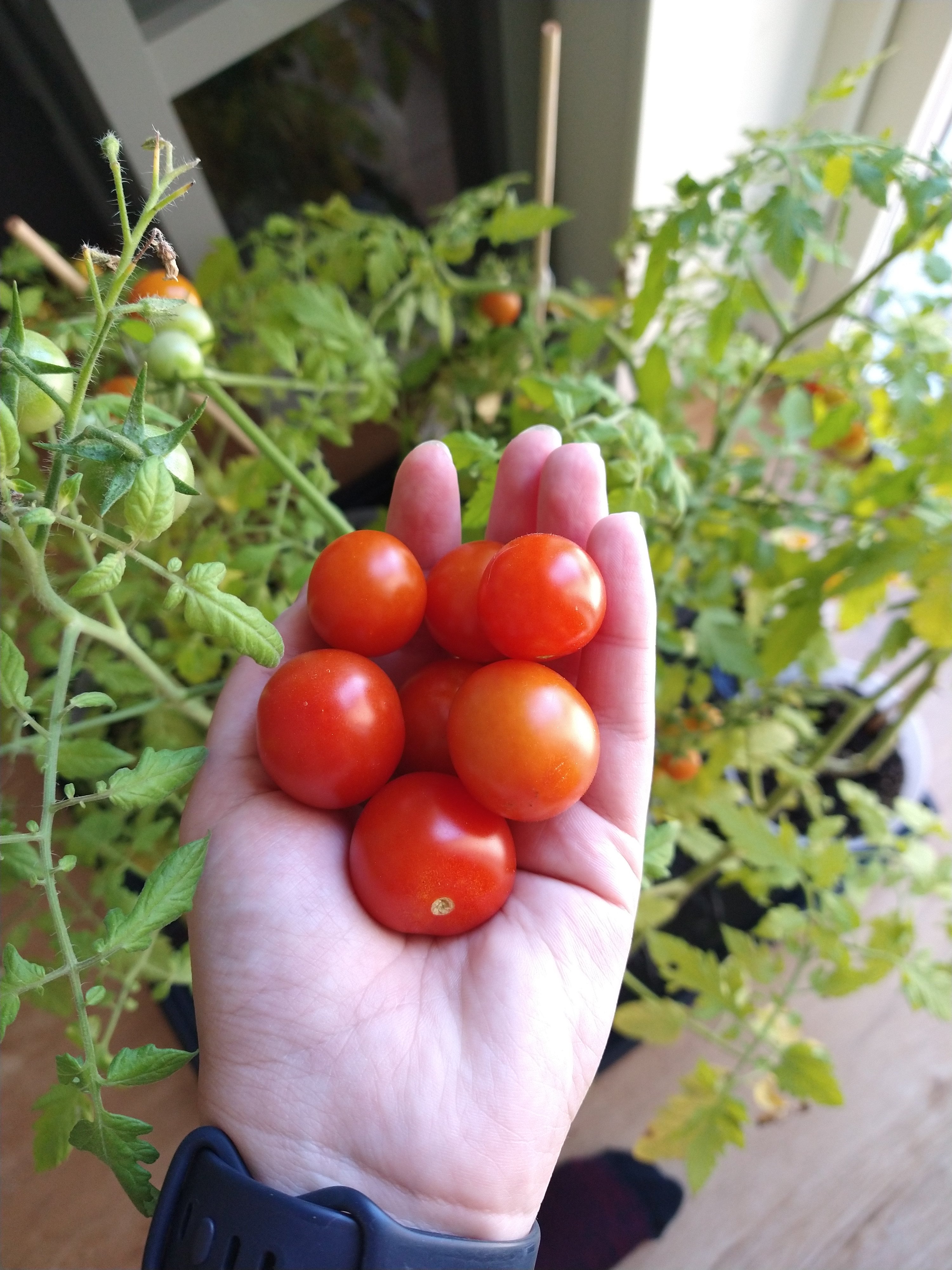 Det är hur underbart som helst att kunna gå och plocka egenodlade körsbärstomater och kryddor i sin egen trädgård när man behöver dem. Den här veckan har många tomater mognat och både jag och Melissa har frossat i tomater. Dessutom har jag plockat av och torkat både oregano och dragon inför höstens och vinterns matlagning. - Träning som har blivit av