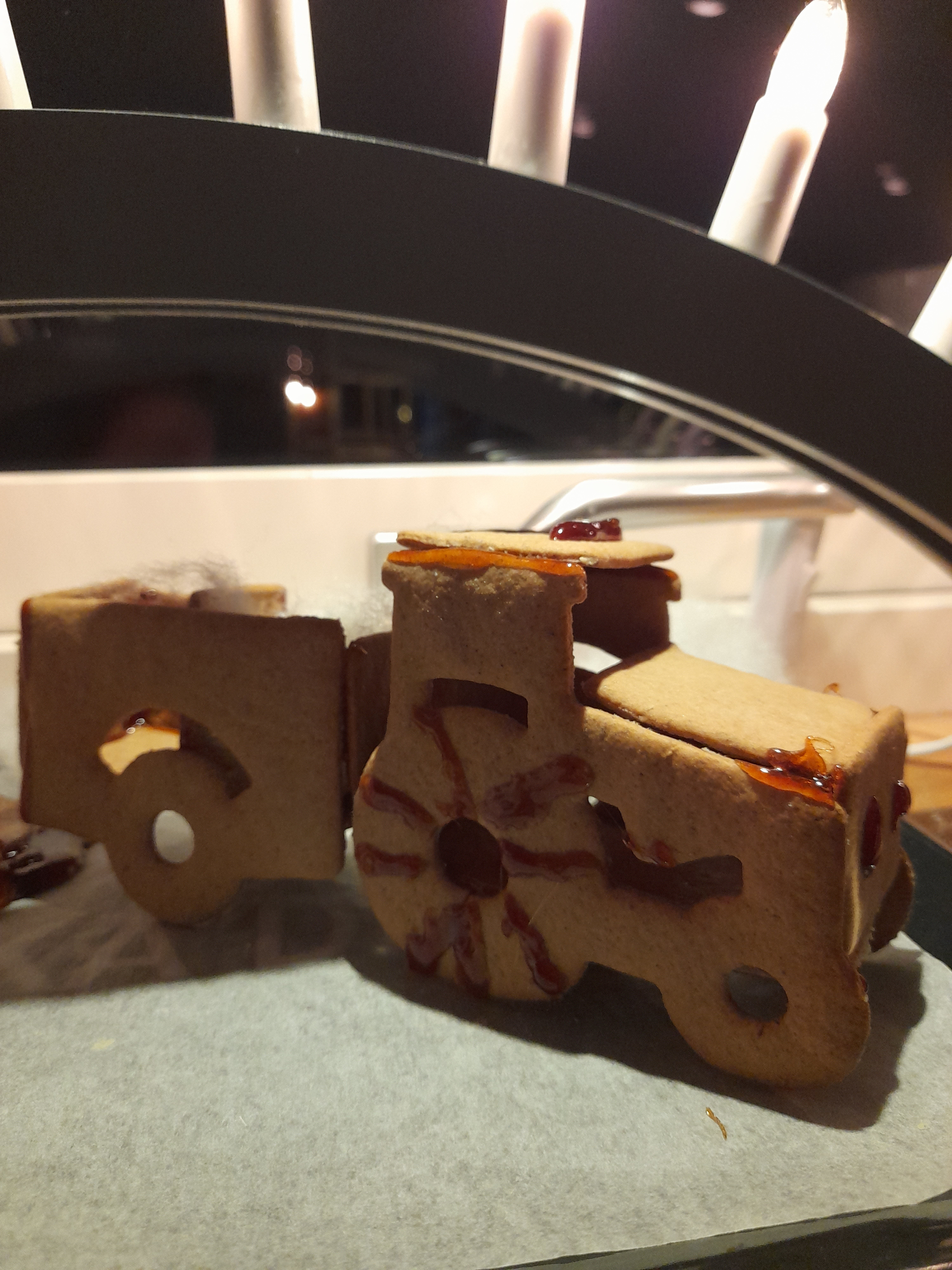 Vi körde lite favorit i repris och bakade lite även denna adventsdag. Joakim och Melissa köpte med sig en pepparkaksdeg hem, vi hade bestämt att inte göra någon egen deg i år. Dock kändes inte den här degen inte riktigt lika bra som den jag brukar göra så det får nog bli egen nästa år, men i mindre mängd då vi inte hinner äta upp pepparkakorna annars. På eftermiddagen blev det i alla fall pepparkaksbak, och Joakim bestämde sig för att göra en traktor med släp i stället för ett pepparkakshus i år. Man kan ju undra vem han fick den idén ifrån? Han och Melissa satt och spelade Farming Simulator häromdagen och Melissa vill alltid se en traktor när vi är ute och går.
