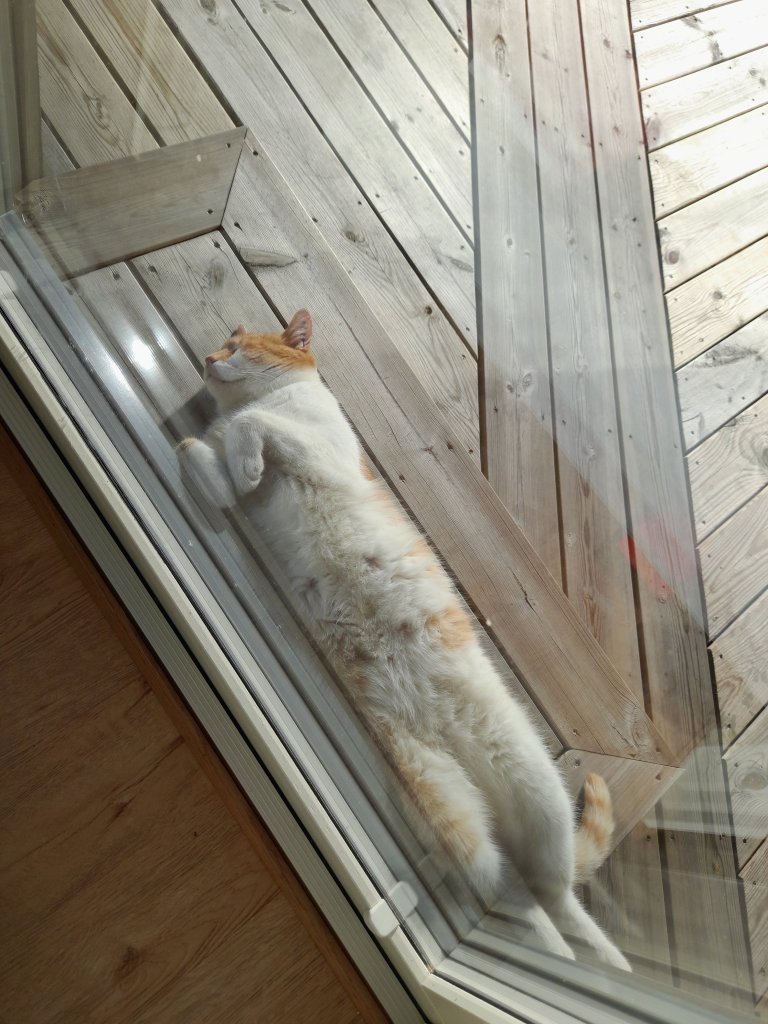 Vilken skön katt! Vår hund brukade lägga sej i solen så fort det var varmt nog 🙂