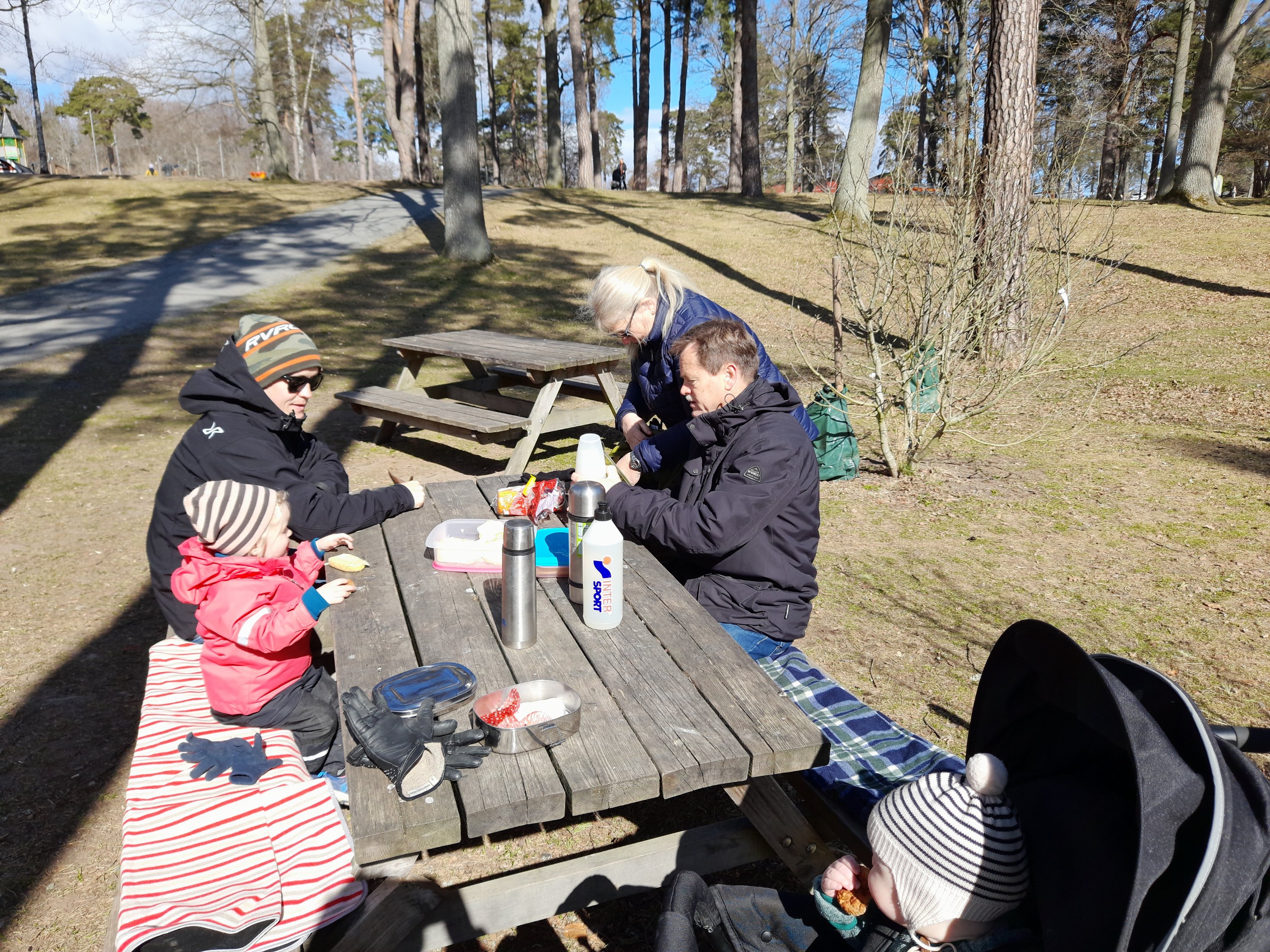 1. Fika smakar alltid godast utomhus. Tåg mm är alltid spännande. Här blir det att åka spårvagn ibland för tjejerna och alltid lika spännande.
