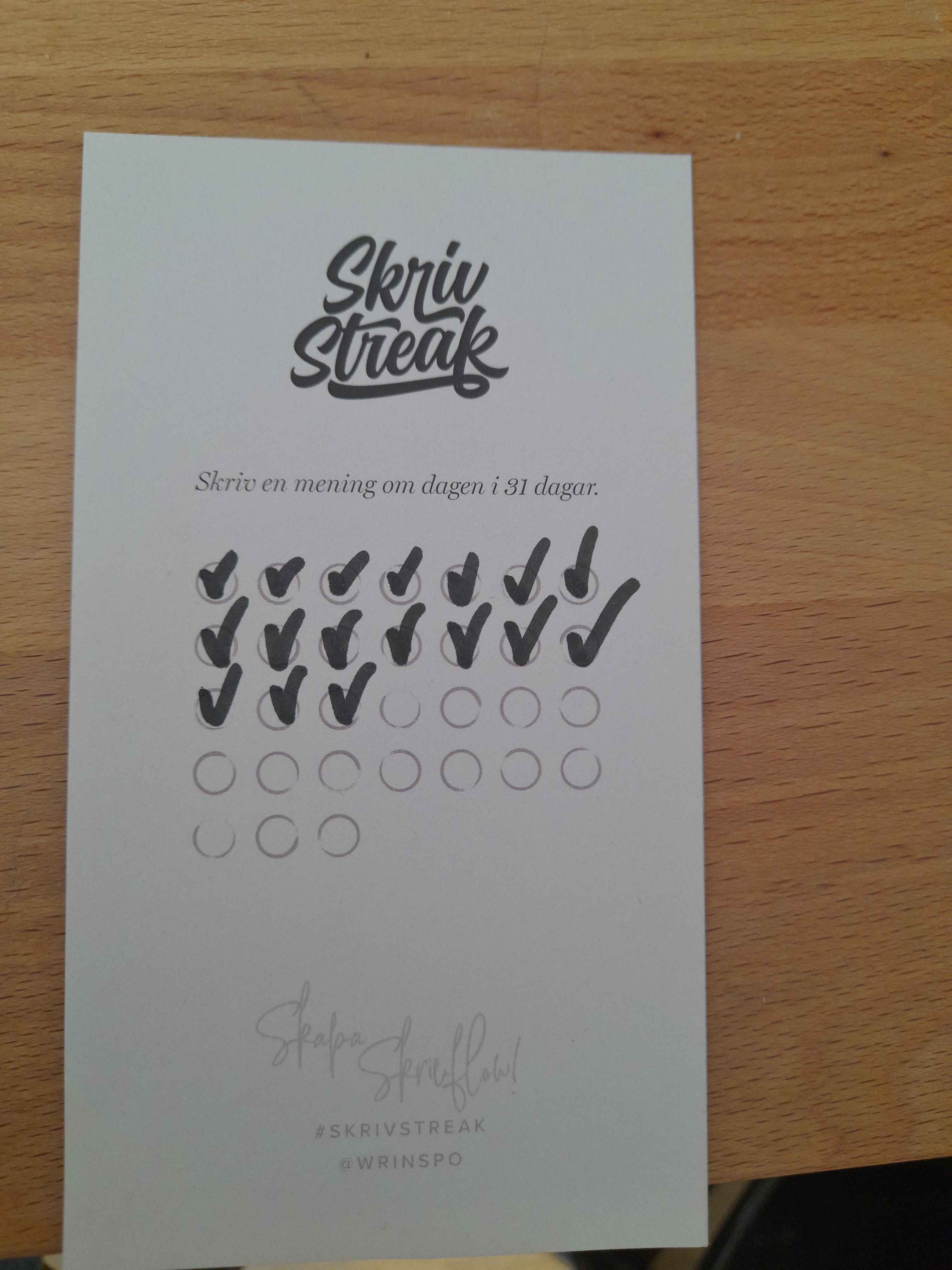 Sedan första maj har jag deltagit i en utmaning som kallas skrivstreak. Det är precis som med runstreak fast med skrivandet och innebär alltså att man ska skriva minst en mening om dagen. Det behöver inte just vara ett bokmanus, utan syftet är att man ska komma in i en skrivrutin. Och det har jag gjort! Jag har ju flera olika projekt igång samtidigt så jag har arbetat lite med det som känns bäst för dagen och vad som är lite mer prioritet på. Men mitt huvudfokus för själva skrivstreakmeningen är ändå ett nytt fantasymanus som jag skriver för hand i ett superfint skrivblock som jag fick när jag anmälde mig till utmaningen, jag har en förkärlek till att skriva för hand och det passar dessutom ypperligt när man bara ska sätta sig ner en kort stund och skriva, skönt att slippa starta datorn. Men manuset rullar på och jag är just nu inne på kapitel 4, och jag har någorlunda koll på allt som komma skall.