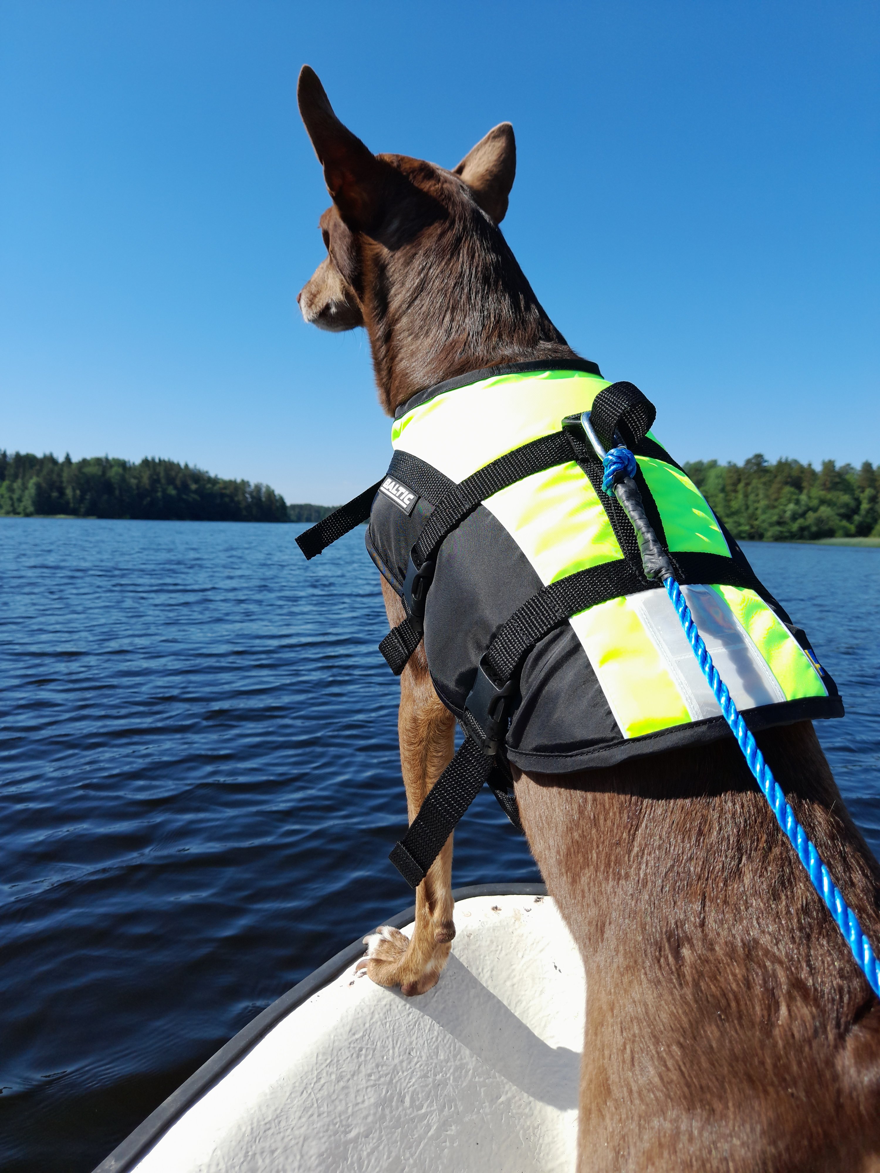 Efter pastasalladslunch och lite mer glass och jordgubbar ville Melissa åka ut med båten igen och denna gång ville hon att mormor skulle följa med. Så vi åkte ut igen, denna gång fiskades inget utan vi åkte fortare istället – vilket hon tyckte var jättekul. Det gjorde Bartolo också, han stod på kanten och njöt av vinddraget och vattnet som skvätte upp. Wilhelm stannade kvar morfar och gammelmorfar uppe vid huset. När vi var på väg in mot bryggan hoppade mormor i vattnet med kläderna på och simmade in den resterade biten, vilket har varit ett av Melissas samtalsämnen efteråt.