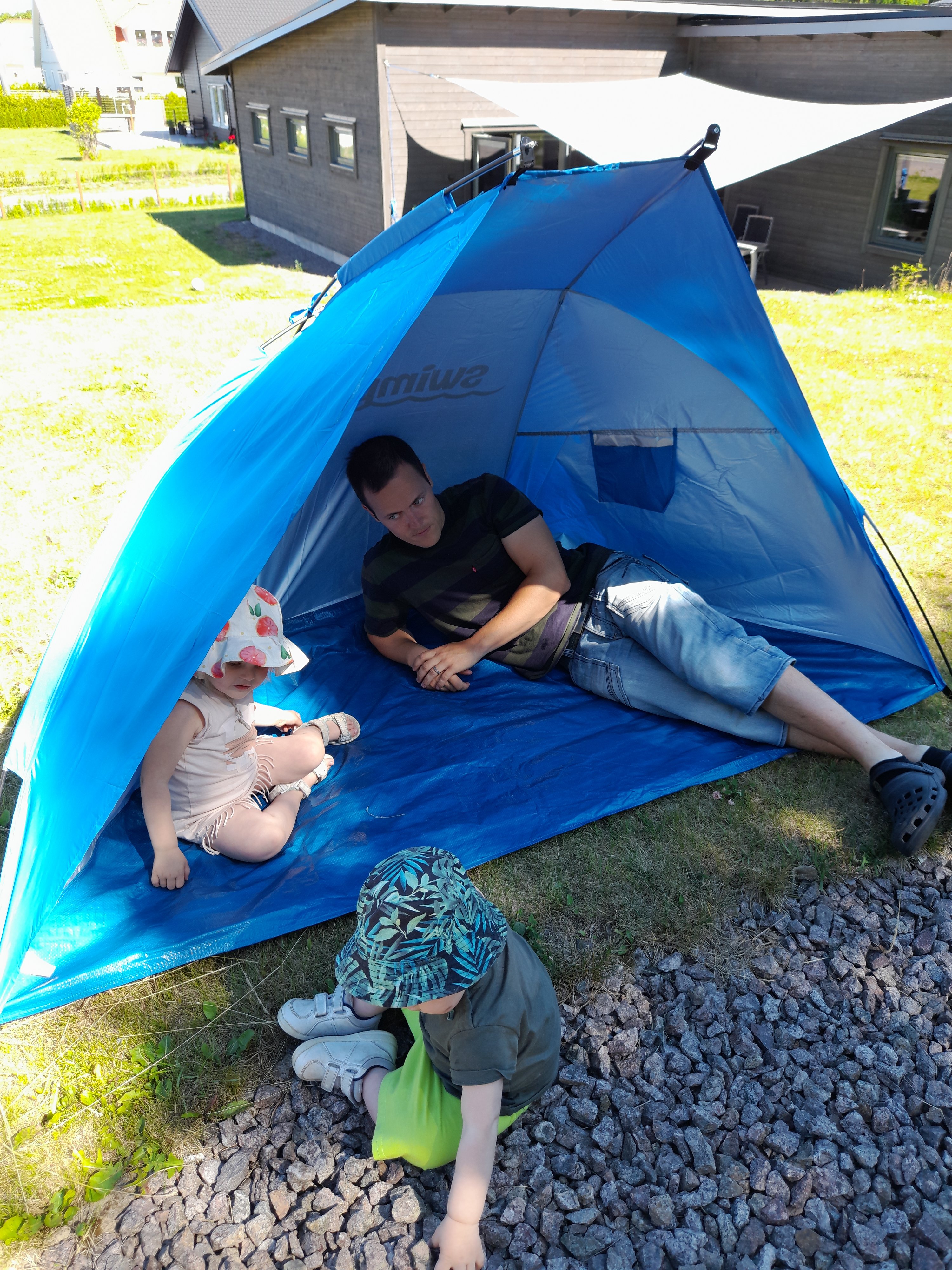 Så mysigt med picknick och perfekt också med sådana tält för barnen så att de kommer bort från solen. Ohh gott det lät med att grilla tillsammans med grannarna =D