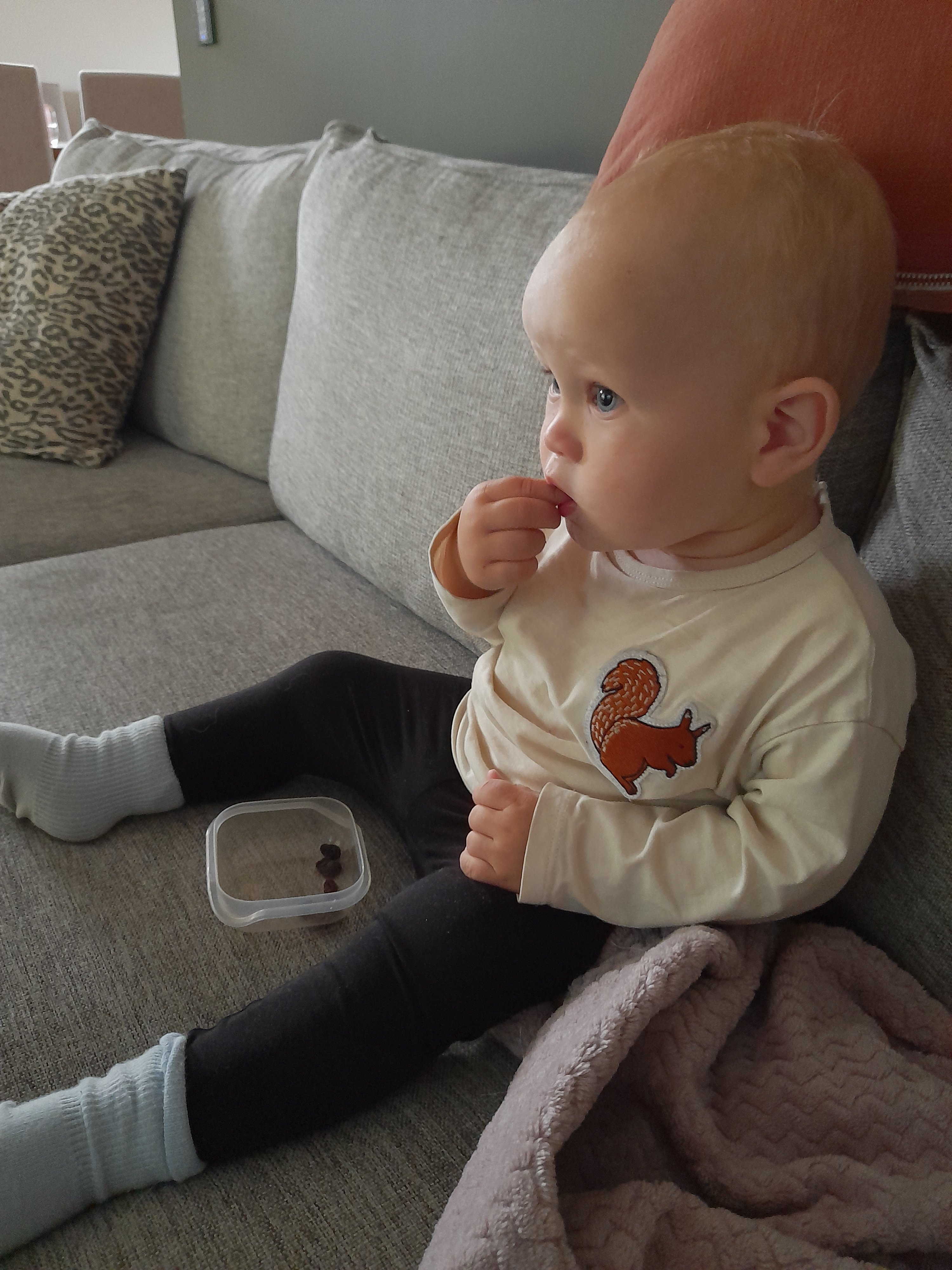 Väl hemma igen och barnen vaknat efter att sovit i bilen så fick de varsin burk med vindruvor och russin och satt i soffan och mumsande medan vi fixade kvällsmat.