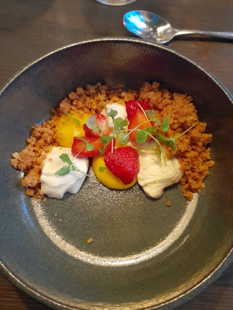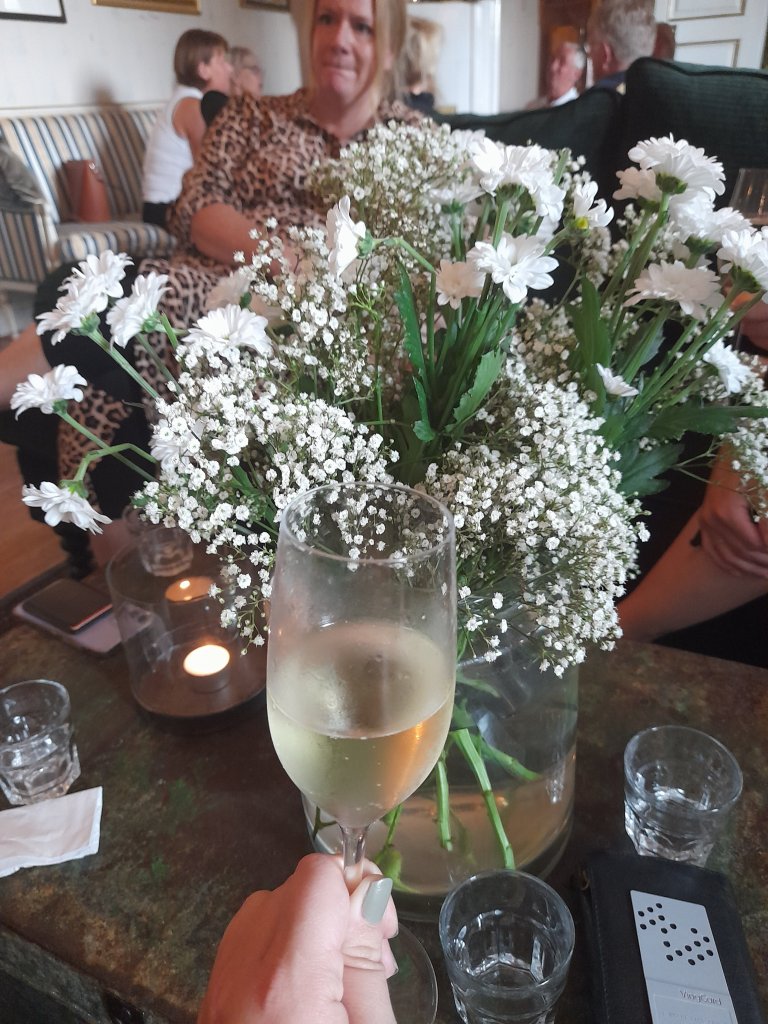 En stund senare uppslöt den sista i dagens sällskap. Det skålades och pratades ännu mer. Till kvällen blev det tvårätters, supergott! Jag tog röding och passionsfruktscheesecake till efterrätt.