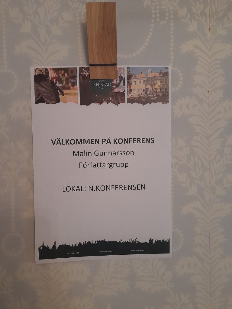 När middagen var klar gick vi upp till vårt konferensrum. Tycker det var så fint att personalen skrivit författargrupp på lappen på dörren.