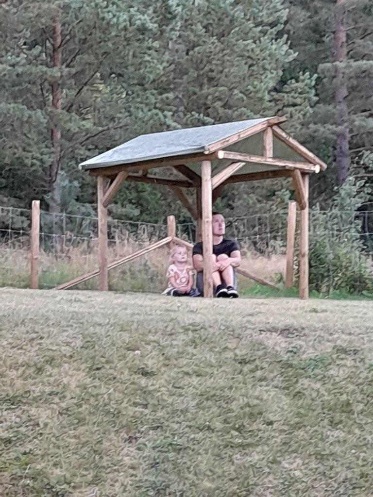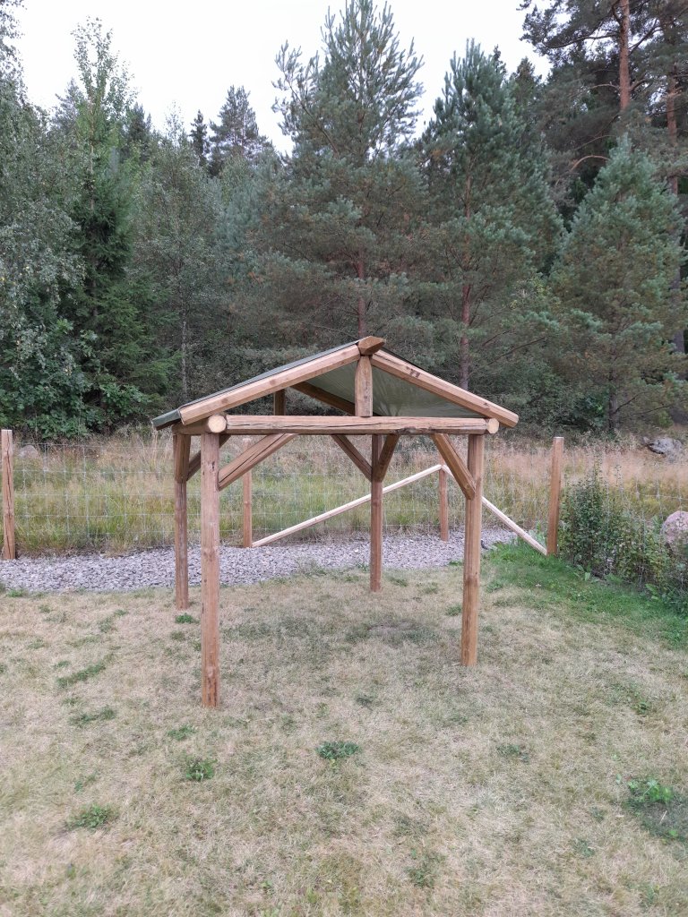 Melissa har pratat om att hon vill ha en lekstuga ett tag, och vi har pratat lite om att bygga någon variant själva, men har inte riktigt kommit på hur den ska se ut. Men vi tänkte att vi inte ville ha en klassisk lekstuga och dessutom en plats där vi alla får plats att vara. Så vi kom fram till att vi skulle bygga mer utav en koja. Idag efter lunch satte Joakim igång att bygga upp den av staketstolpar som vi hade kvar. Nu har stommen kommit upp! Vilket vi firande med hembakad kladdkaka. Det är fortfarande lite som ska byggas och den ska göras lite mysigare, men visst blir den fin?