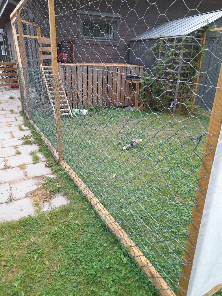 Eftersom Bartolo tog sig ut från hundgården igår igen så satte vi oss i bilen idag och åkte in till stan för att köpa grövre nät. Jag kände att jag behövde komma ut lite efter att varit hemma en vecka men eftersom jag fortfarande är lite småförkyld så väntade jag kvar i bilen tillsammans med Wilhelm och passade på att skriva lite. Hemma igen så var det dags att få upp det nya nätet. Det tog sin lilla tid. Vi satte det i botten, utanför det redan som finns. Så nu ska det mycket till för att han ska kunna ta sig ut.