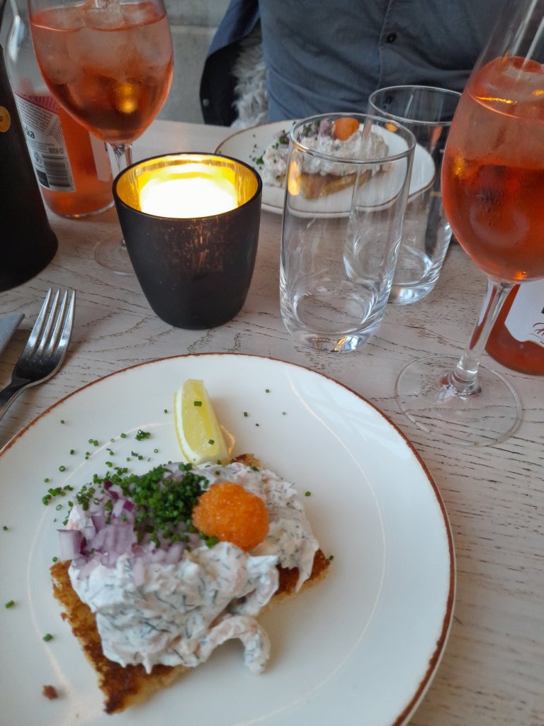 Efter att ha hängt en stund på hotellrummet och bara tagit det lugnt svidade vi om och gick till restaurangen Tvåkanten där vi hade bokat bord. Supermysigt ställe och väldigt god mat. Där satt vi i 2,5 timme och njöt och pratade.