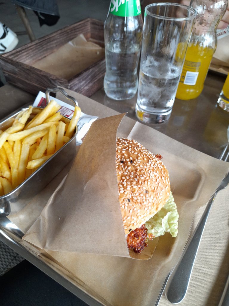 Strax innan tolv gick vi tillbaka till rummet och lämnade förmiddagens skörd av böcker, sedan letade vi upp en restaurang för lunch. Tur att vi kom dit en stund innan den öppnade och stod utanför för vi lyckades få en plats även om vi inte bokat bord, och det tog inte lång tid innan restaurangen var full. Efter lunch var det tillbaka in på mässgolvet, mer prat, föredrag och böcker. Till slut var huvudet helt slut av allt sorl och vi bestämde oss för att ge upp till hotellrummet för att vila fötterna och huvudet en stund.