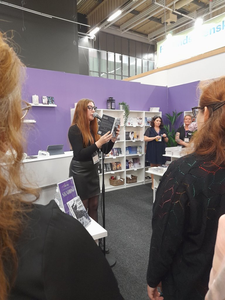 Vi kände oss som nya människor när vi kom ner till mässan igen, gick runt en sväng till och tog sedan en fika innan vi lyssnade på sista föredraget och signeringen som jag var intresserad av.