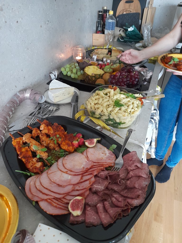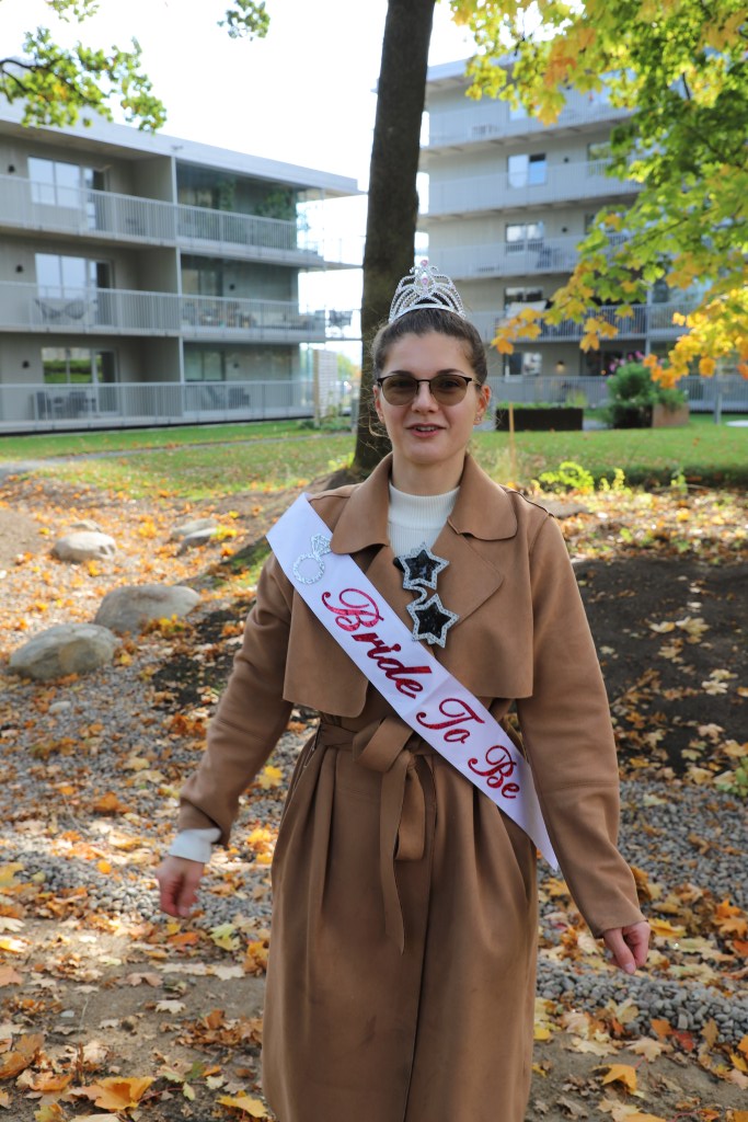 På lördagsmorgonen bar det av ner till Jönköping för möhippa. Joakim släppte av mig hos min svägerska innan han och barnen åkte vidare till hans föräldrar. Jag och Julia åkte och hämtade dagens lunch innan vi hämtade upp en till som skulle vara med på möhippan vid stationen och efter det åkte vi upp och parkerade vid Nicole, den blivande bruden. Där mötte vi upp de andra. Jag hade bokat in Nicole för att fota mig inför kommande boksläpp så hon trodde att hon skulle vi skulle ut att ta kort. Och när vi var ute bland träden hoppade de andra fram från träden med tutor. Efter en del skratt och bilder, bjöd vi in oss till Nicole och pyntade tröjor som vi skulle ha senare på dagen och åt exotisk planka. Givetvis blev det mängdvis med prat.