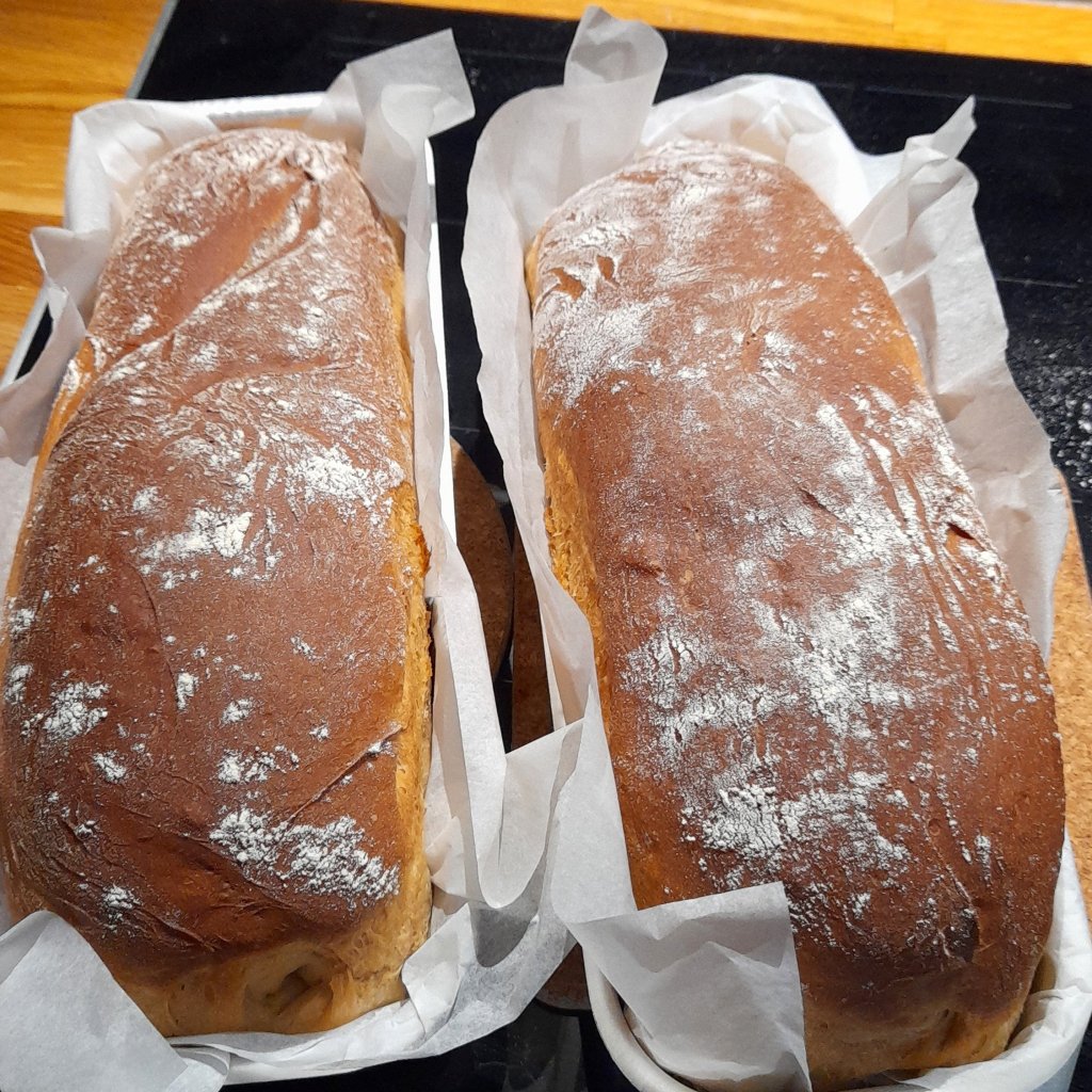 Idag har det varit en lugn dag här hemma. Det har varvats att läsa, skriva och vila. Två sirapslimpor har blivit bakade och medan de jäste passade jag på att ta ett varmt bad, vilket gjorde underverk för halsen. Sirapslimporna blev riktigt fina och goda. Nu är frysen full med både bullar och bröd.
