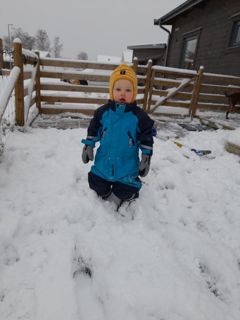 Dagen startade tidigt med att vi höra hur barnen och mina föräldrar tasslade i huset. Melissa hade lagt sig hos dem under natten och de hade även plockat upp Wilhelm när han vaknade. Det blev en tidigt helgfrukost då mina föräldrar skulle vara på spat klockan 9. När de hade kommit iväg gav vi oss andra ut i snön. Efter att vi dragit fram alla vinterkläder förstås, vilket var ett meck i sig. Men som alla gillade att komma ut i snön. Bartolo sprang runt och vi kastade snöbollar. Snön var inte optimal för att bygga snögubbar men vi gjorde en snölykta, dock verkade det som att ödet inte ville att vi skulle ha en snölykta på framsidan för Bartolo sprang ned den tre gånger och när jag byggt upp den en till gång kom ångvält Wilhelm och stampade sönder snöbollar och tyckte det var superkul. Givetvis plockade vi även fram pulkorna och ft blev ett par turer i vår egen pulkabacke i trädgården.