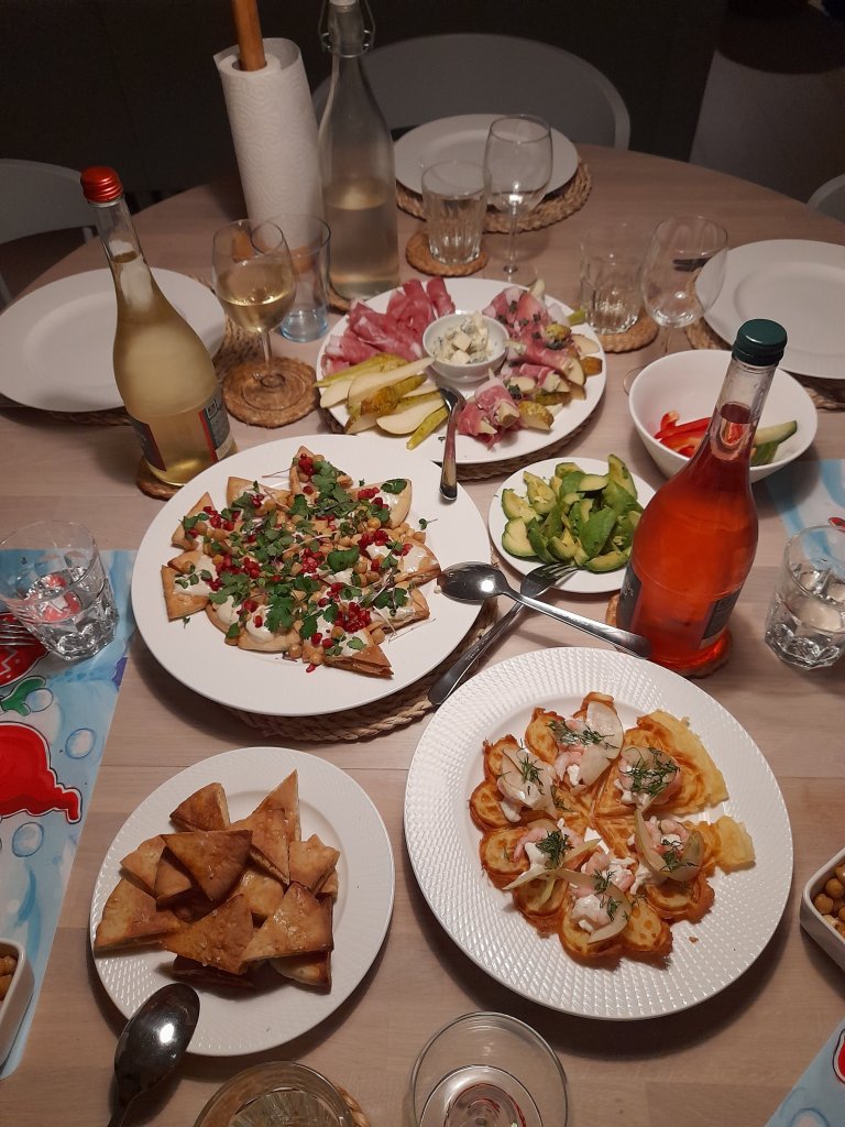 Det blev riktigt god nyårsmiddag i form av plockmat och våfflor till barnen.