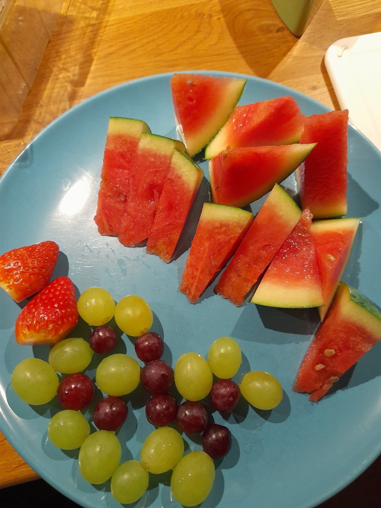 Idag tog vi faktiskt sovmorgon och åt inte frukost förrän vid halv nio. Direkt efter frukosten gav vi oss ut i trädgården och spenderade resten av förmiddagen därute. Barnen lekte i sandlådan och rullade nerför kullen. Tänk vad roligt det kan vara att springa upp för en kulle och sedan rulla ner. Jag gav mig i kast med att börja göra iordning i slänten och hann räfsa bort en del gräs. Barnen var också med emellanåt och hjälpte till innan de tröttnade och gick vidare till något annat. Bartolo fick också springa runt och han och Bamako lekte ett bra tag. När vi kom in var det dags för lite frukt och lässtund