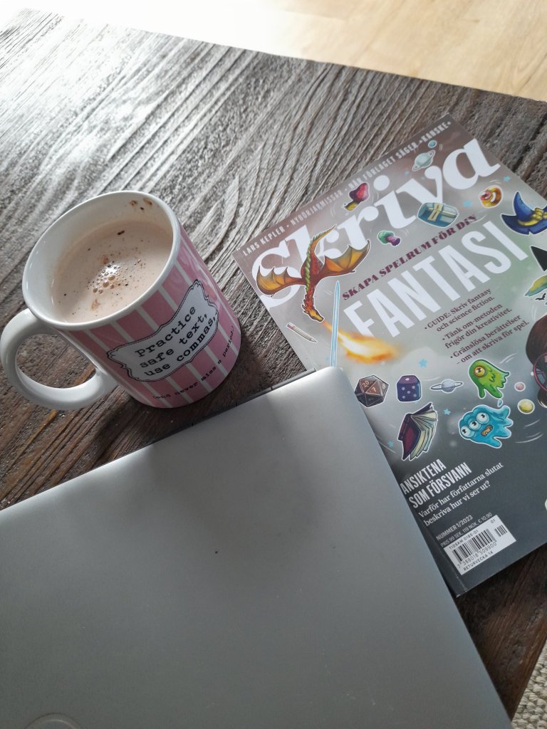 Under förmiddagen städades huset och efter lunch tog vi en promenad med ansiktet vinklat upp mot solen. Vädret har varit förträffligt idag och det gäller verkligen att ta vara på solen och tanka på D-vitamin. Det gör så mycket för humöret. När vi var tillbaka från promenaden var Wilhelm trött så han fick gå och lägga sig och Joakim och Melissa gick ut i garaget för att bygga vidare på 3D-skrivaren. Den här tiden brukar vanligtvis vara min skrivtid på helgen men då mitt fantasymanus är hos en testläsare och jag skrev ut mitt skräckmanus igår för Joakim att läsa så har jag manusvila. Visserligen finns det idéer som lockar att börja med, men de får vänta tills jag har redigerat mina nuvarande manus. Jag kan inte ha för många manus igång samtidigt känner jag, och dessutom måste jag bli bättre på det här med pauser. Så idag blev det en avkopplande stund med egentid. Fixade mig en kopp varm choklad och kröp ner under filten i soffan tillsammans med tidningen ”Skriva” och när den var utläst fortsatte jag att testläsa ett manus som kommer ges ut som bok under maj. En spännande och ryslig historia.