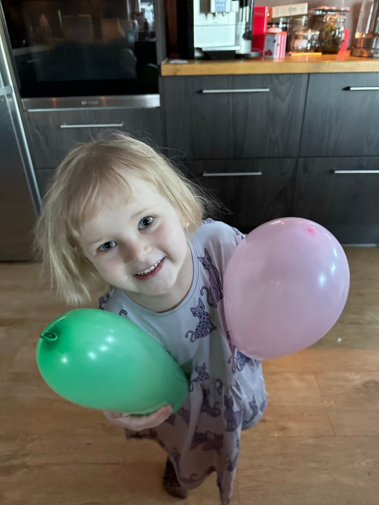 Idag är det ingen vanlig dag utan Wilhelms födelsedag! Helt otroligt vad fort tiden går och vår kille börjar bli stor. Både jag och Joakim gick upp innan barnen och började fixa här hemma. Ballonger blåstes och jag ställde mig och stekte amerikanska pannkakor till en pannkaksfrukost. När barnen kom upp fick de leka med ballongerna medan vi plockade fram på bordet. Både Wilhelm och Melissa älskar att leka med ballonger så hela huset fylldes av skratt, ett underbart ljud att plocka fram frukost till kan jag säga. Amerikanska pannkakor med sylt, grädde och blåbär var en riktig hit till frukost kan jag säga.