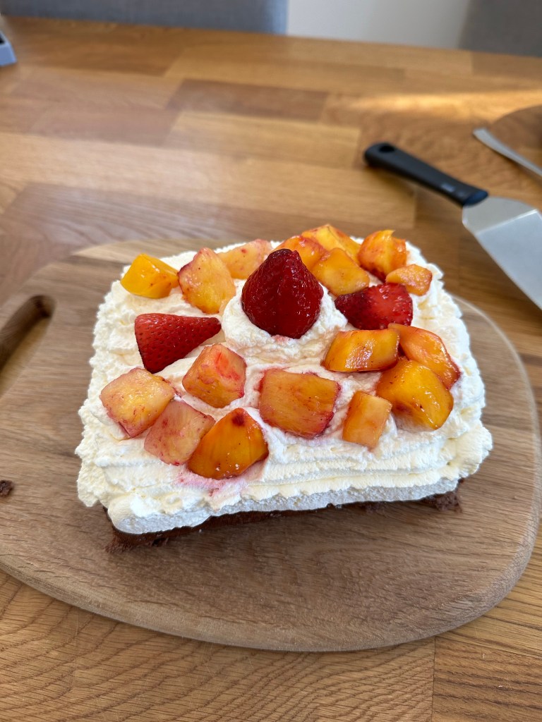 Tyvärr började barnen både bli lite kalla och hungriga så det blev inte någon lång stund i lekparken utan det var snabbt hem igen för att börja med maten. Dagen till ära hade vi även bakat en drömrulltårta som vi pimpade med grädde, frukt och bär. Riktigt smaskigt!