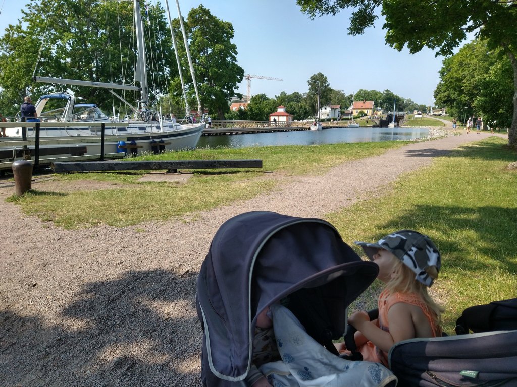 Vid Bergs slussar på Göta kanal är det ofta mycket båtar och det brukar vara uppskattat bland barnen att sätta sig i skuggan med varsin glass och kika på båtarna som åker förbi och slussar sig upp och ner.